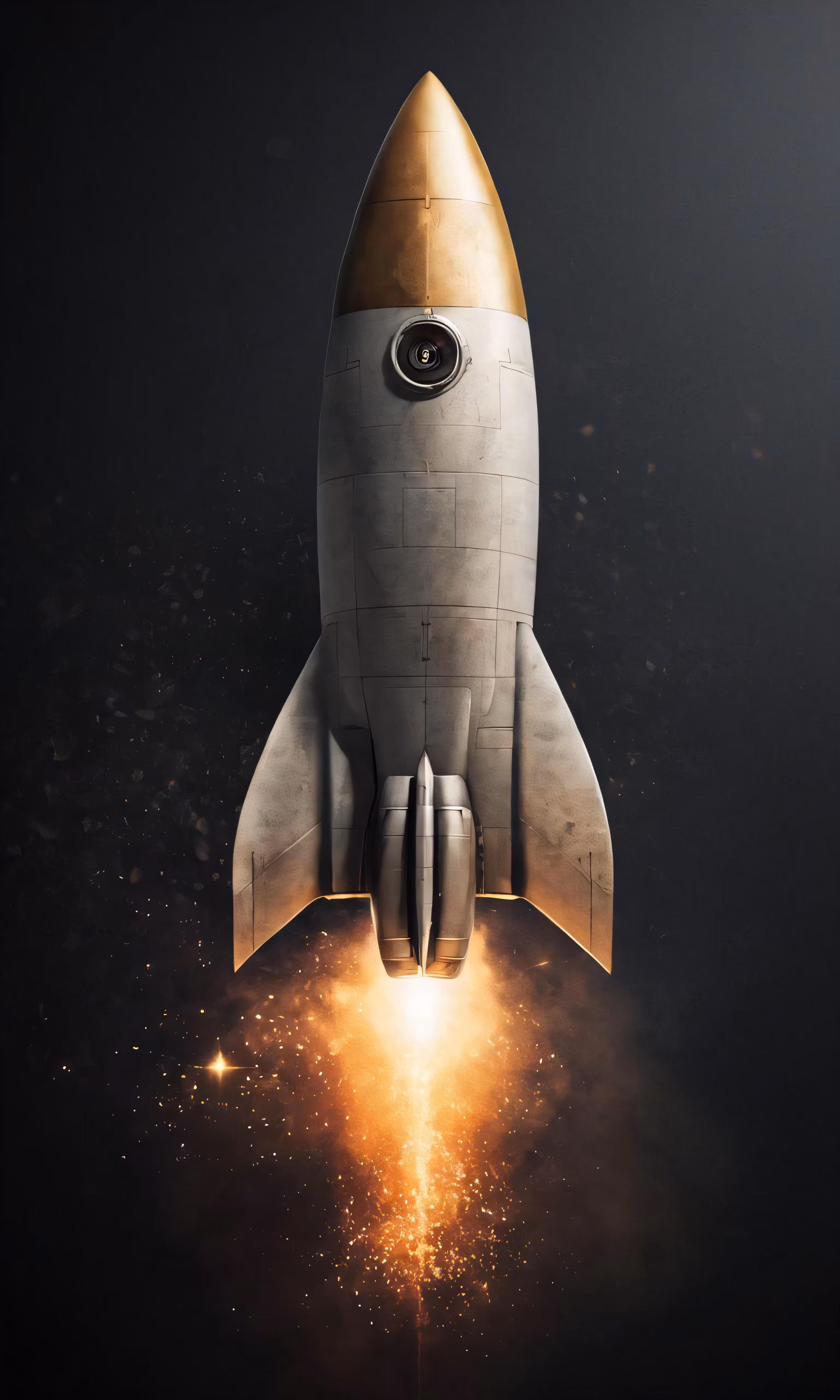 High resolution picture, free to use, a large silver rocket is going towards the camera