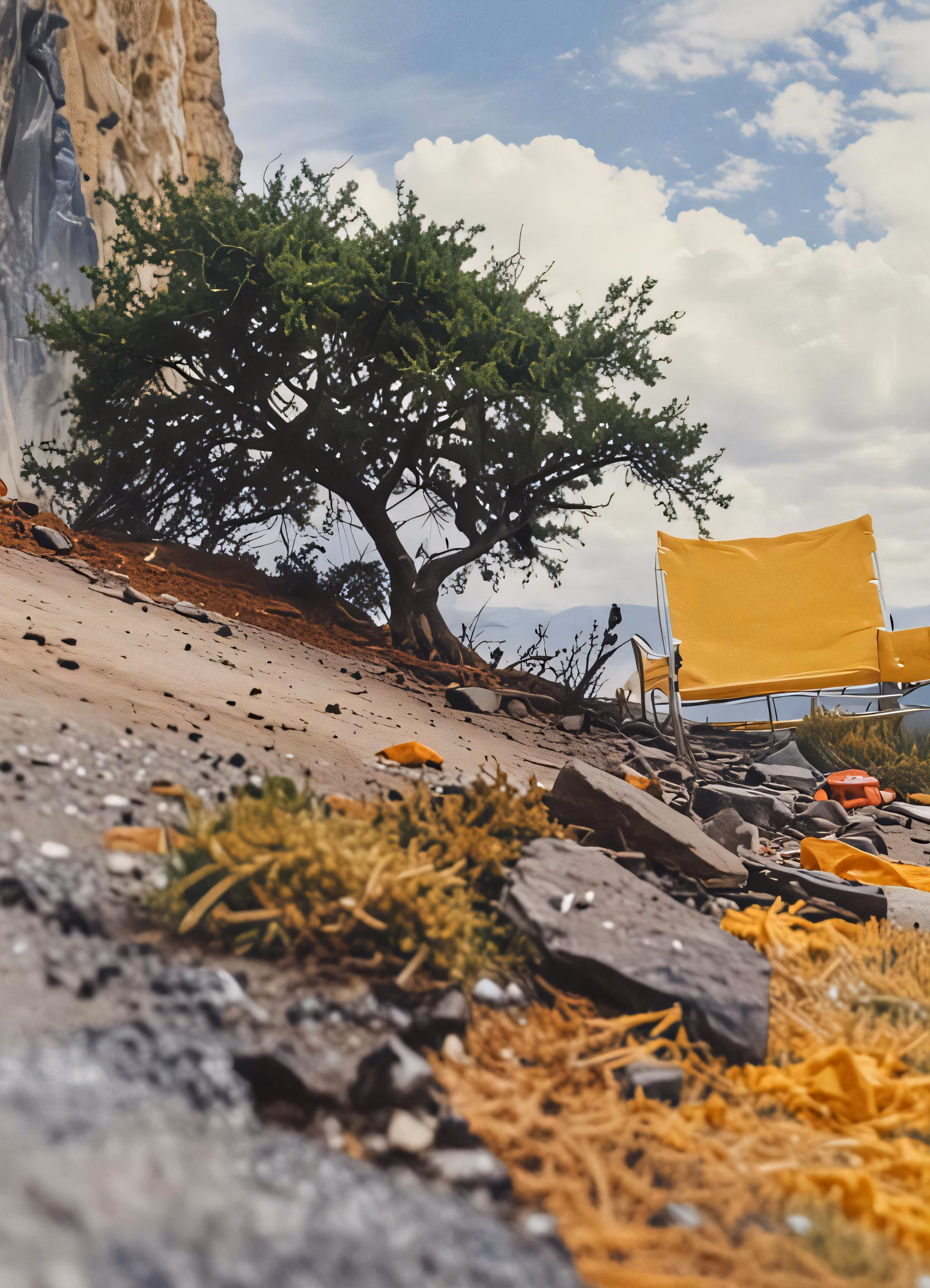 High resolution picture, free to use, a large tree growing on top of a rocky hillside