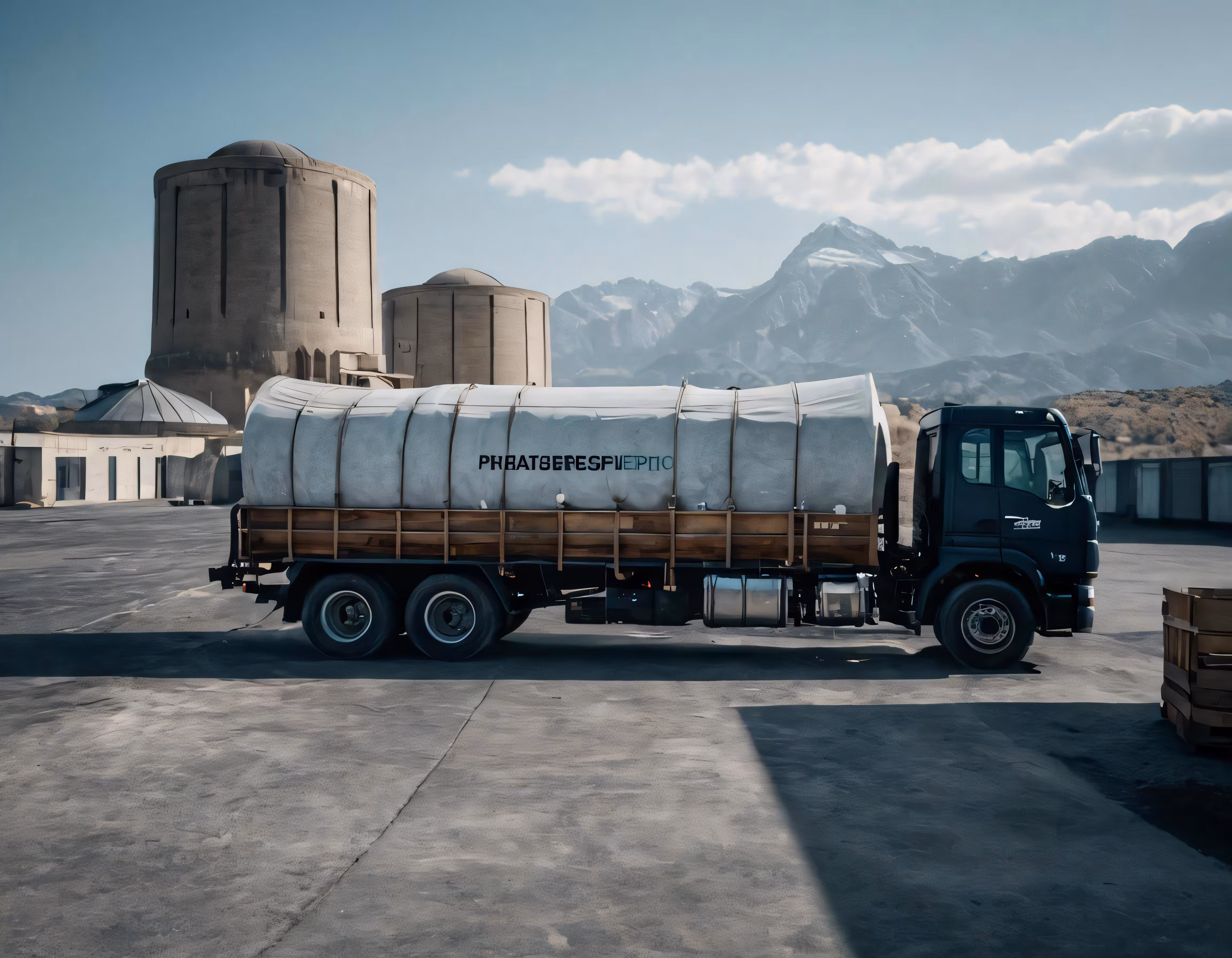 High resolution picture, free to use, a large truck with a cargo container on the back of it