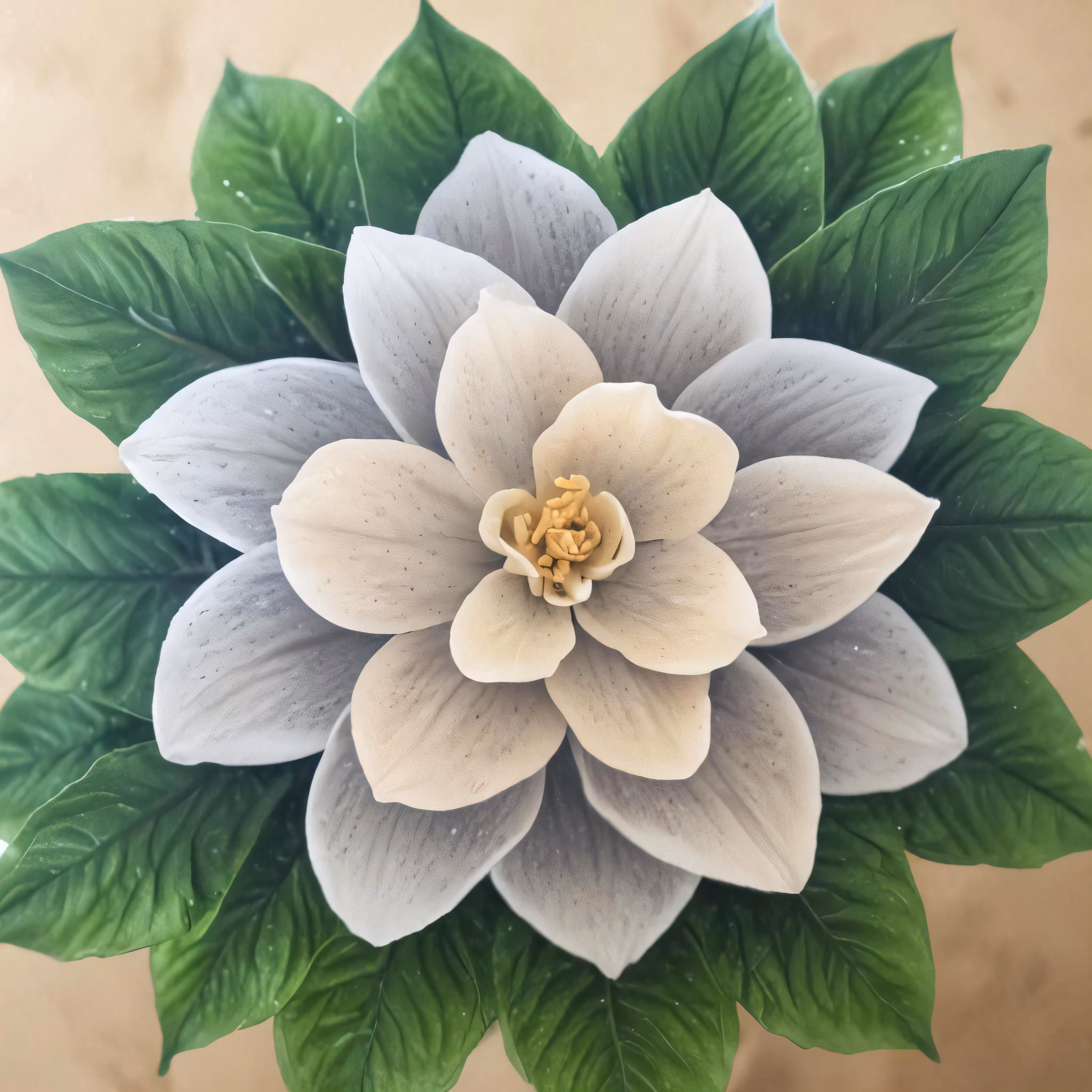 High resolution picture, free to use, a large white and blue flower with green leaves