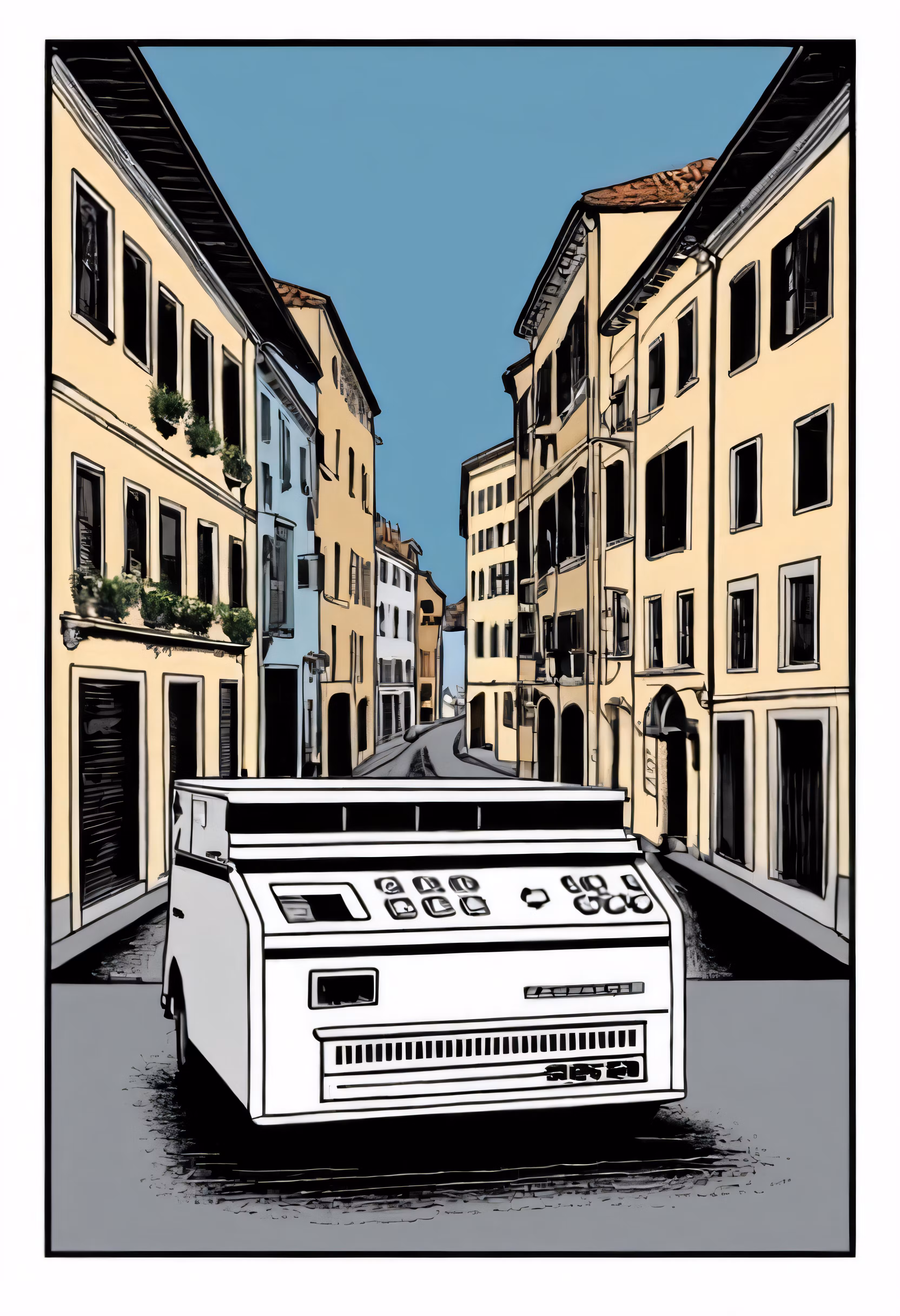 High resolution picture, free to use, a large white piece of art sitting on the ground in front of a street