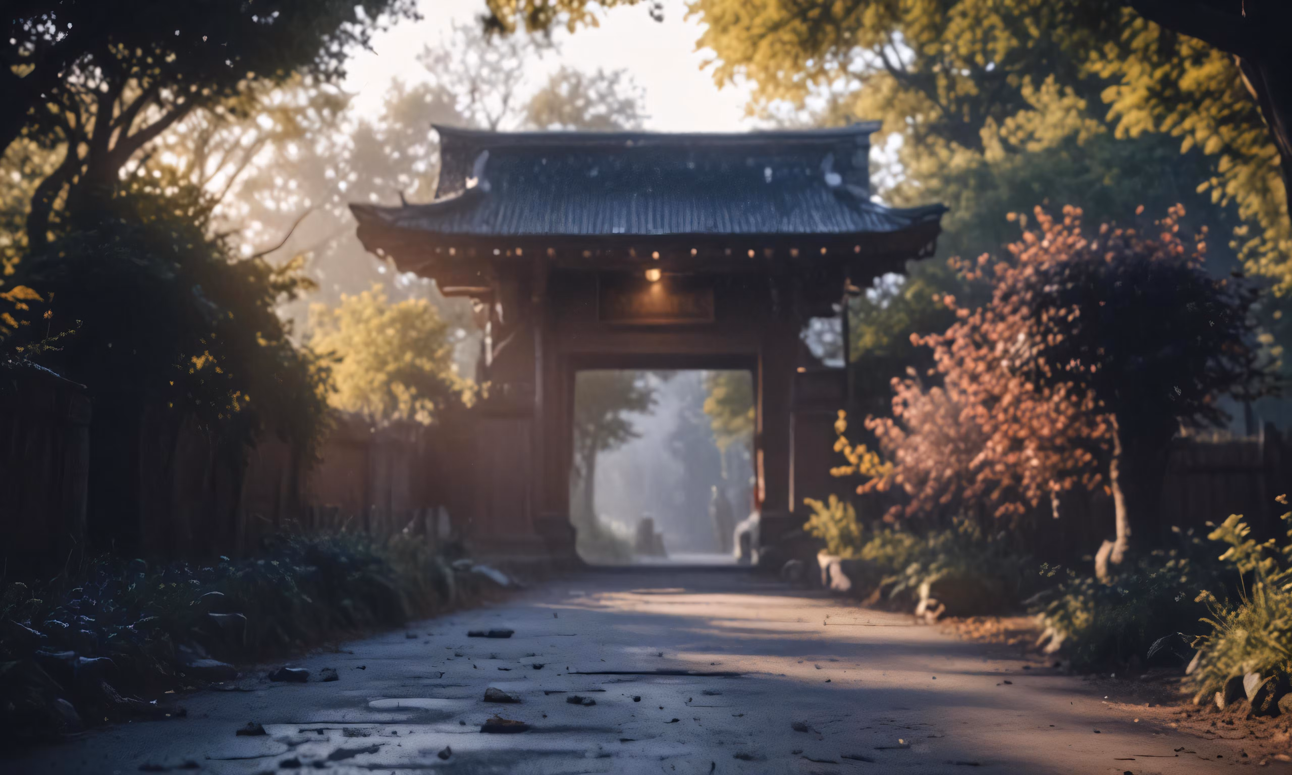 High resolution picture, free to use, a large wooden gate with lights shine in the background