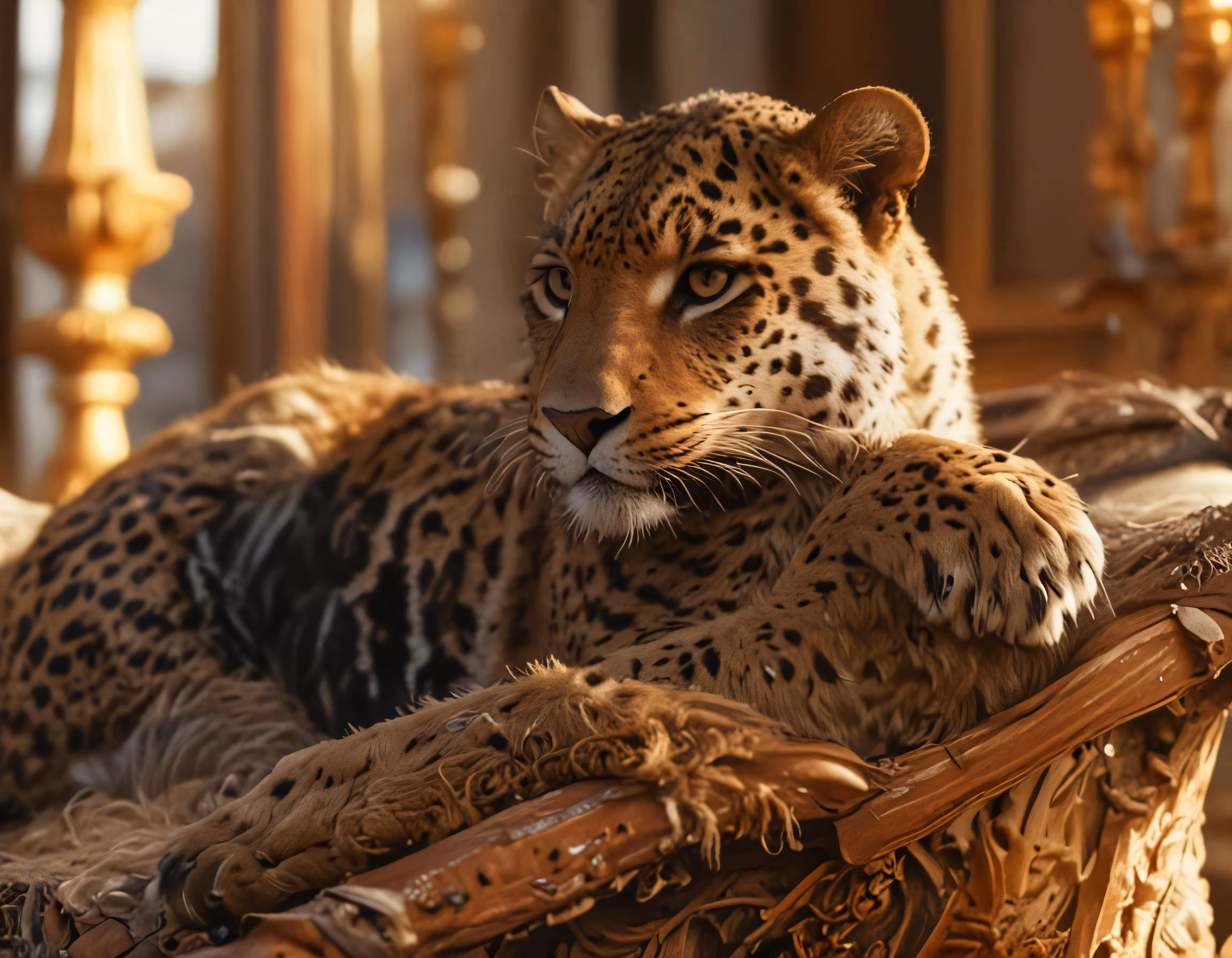High resolution picture, free to use, a leopard laying down in a wicker chair