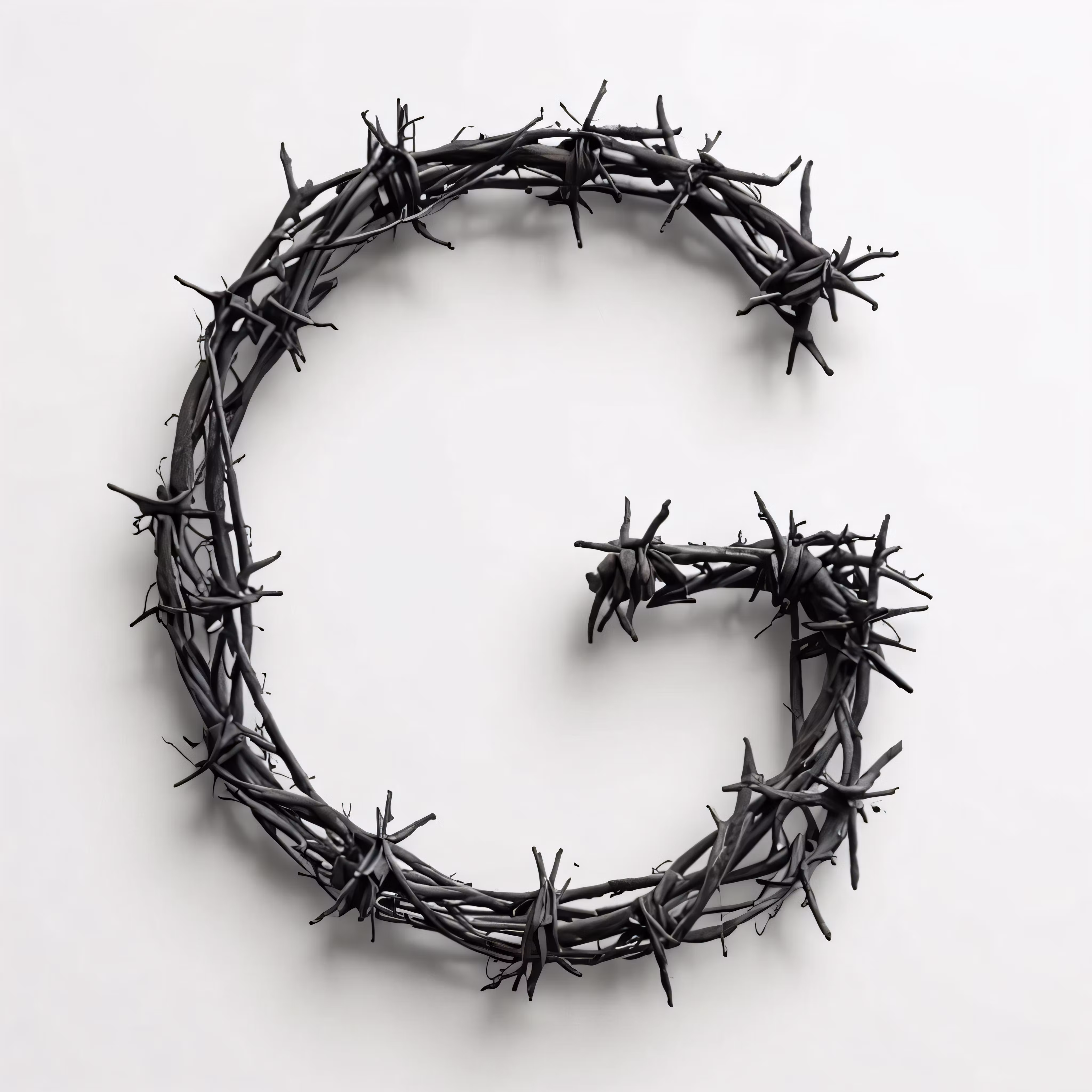 High resolution picture, free to use, a letter made up of barbed wire and two hooks
