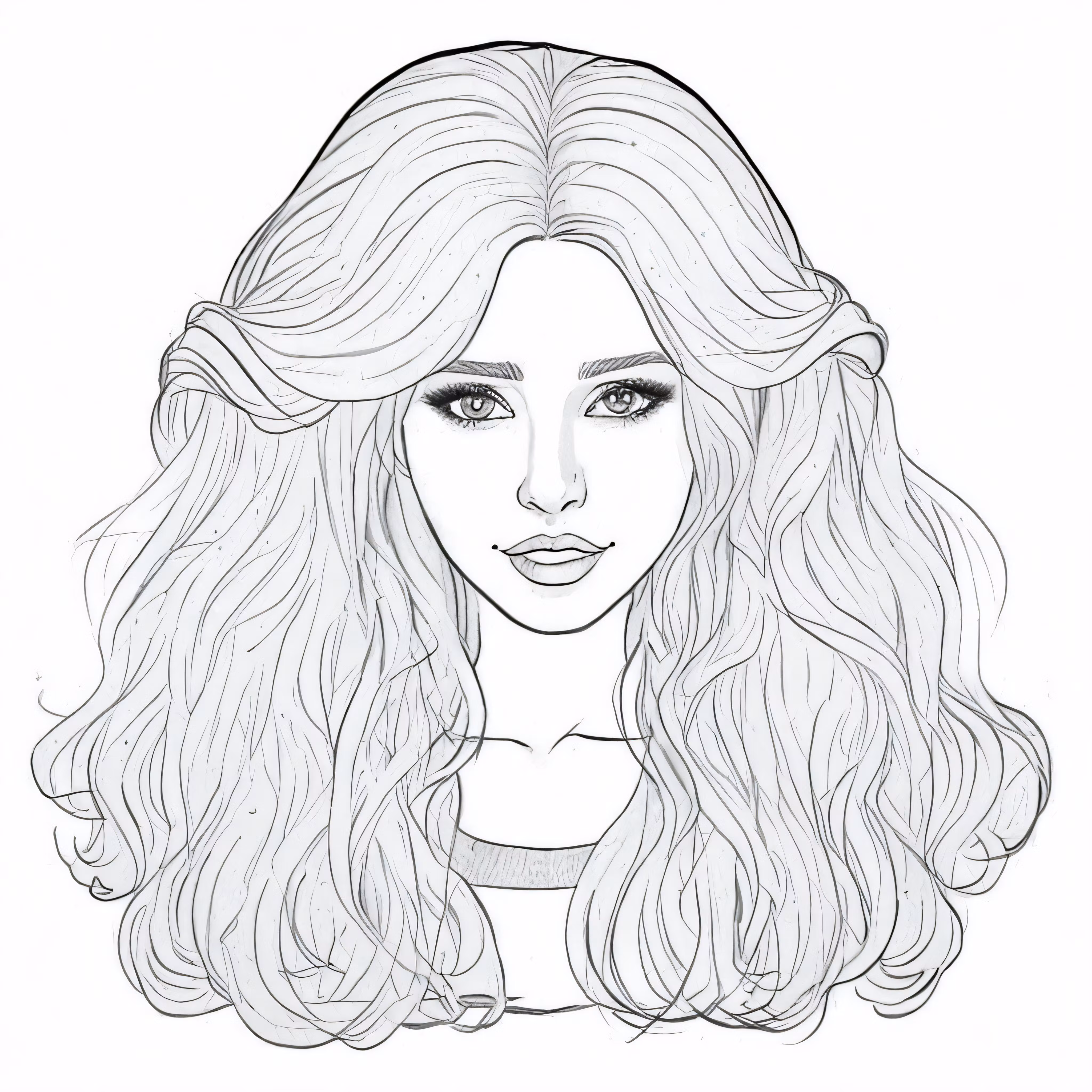 High resolution picture, free to use, a line drawing of a woman with long, curly hair