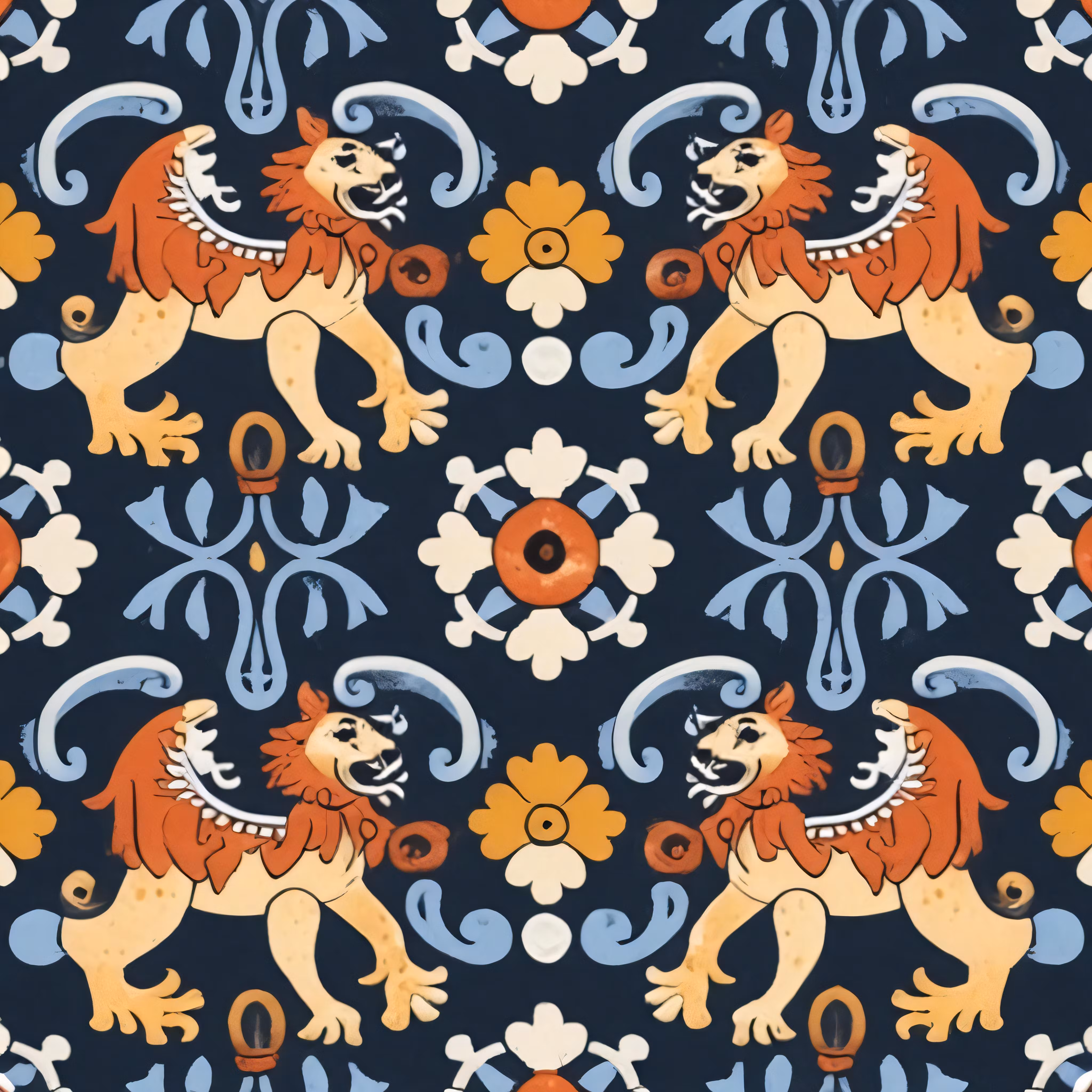 High resolution picture, free to use, a lion pattern in orange, blue, and red
