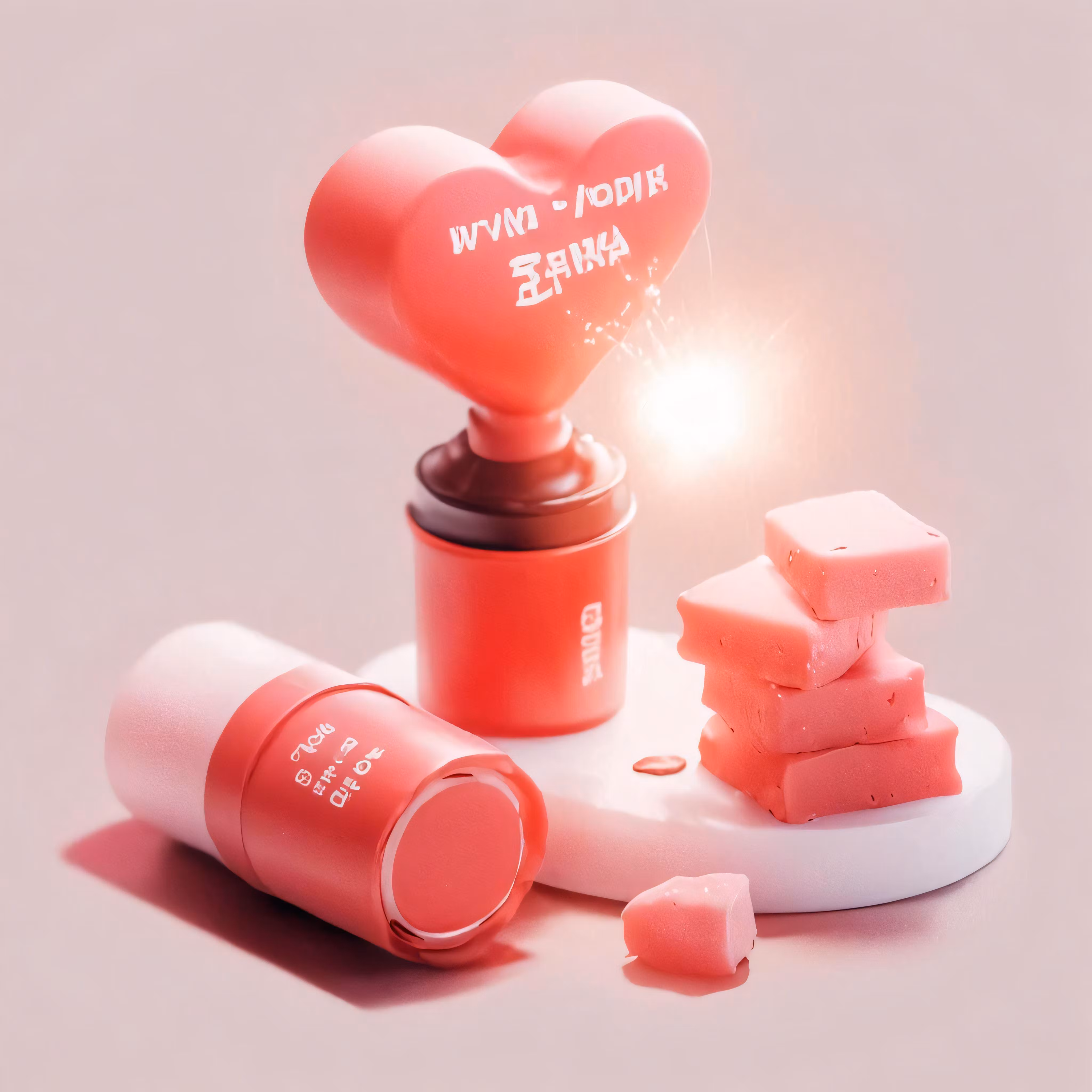 High resolution picture, free to use, a lipstick and two bottles with small pink cubes