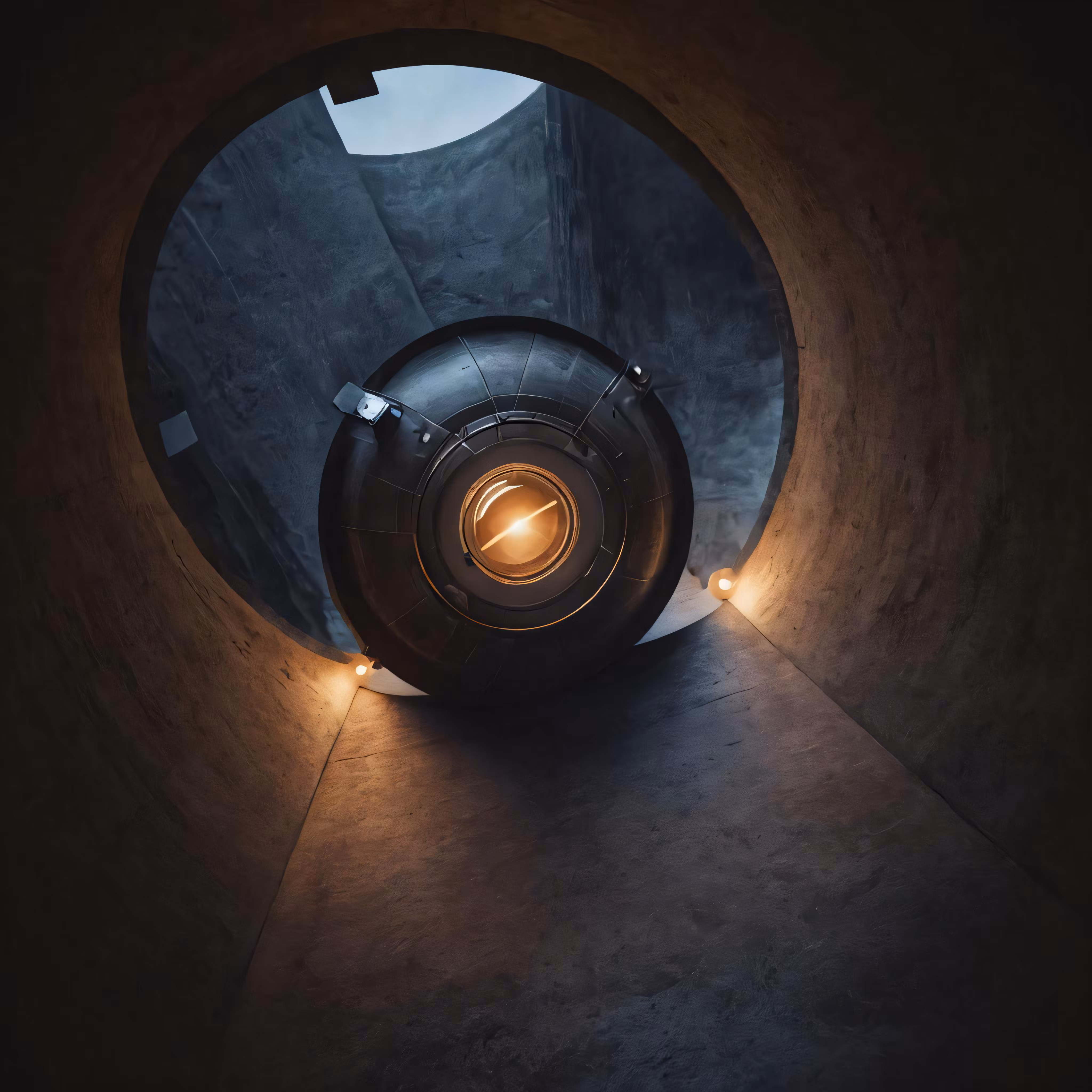 High resolution picture, free to use, a lit   up hole in the concrete is a circular light fixture