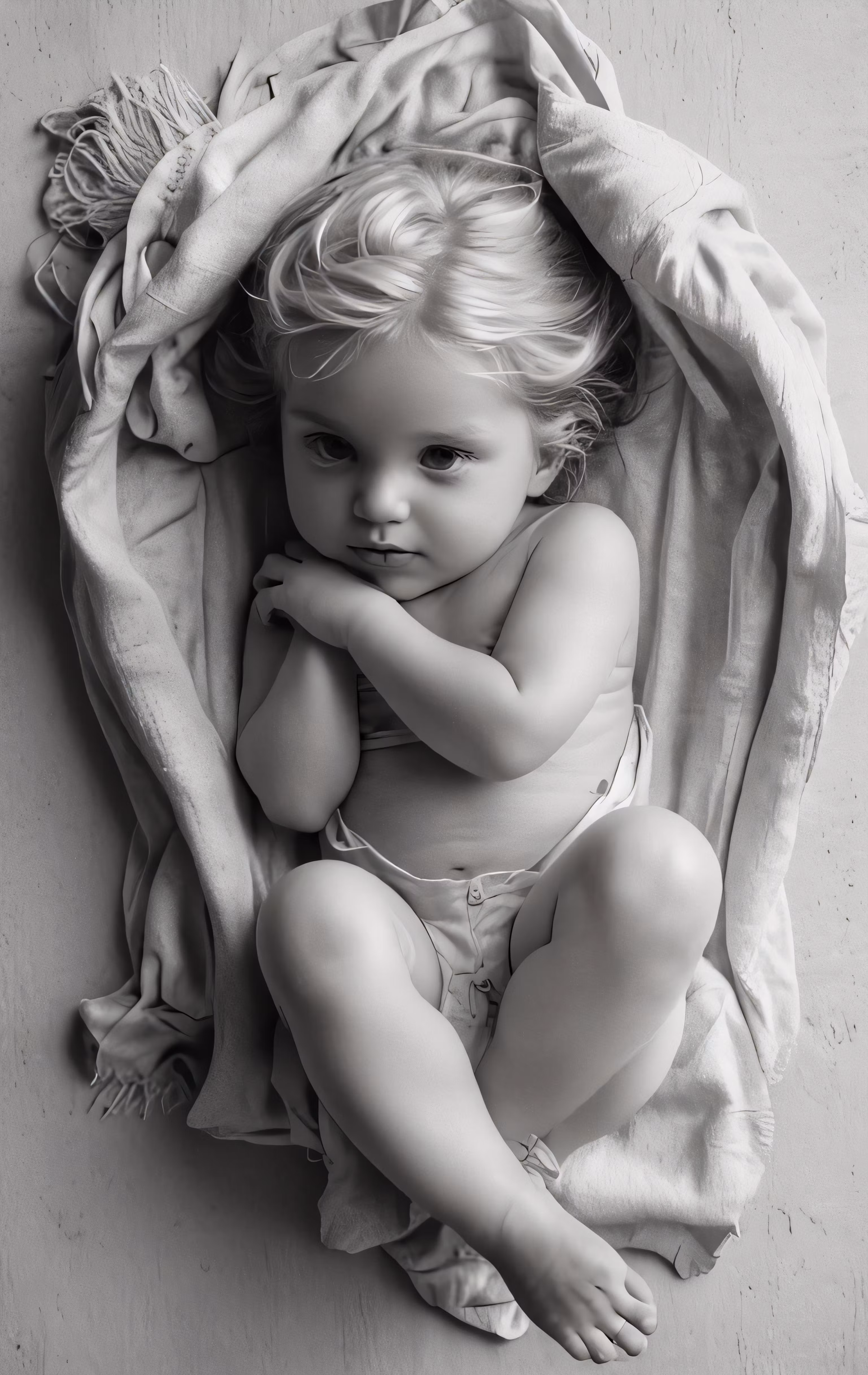 High resolution picture, free to use, a little baby sits with its hand on her chest