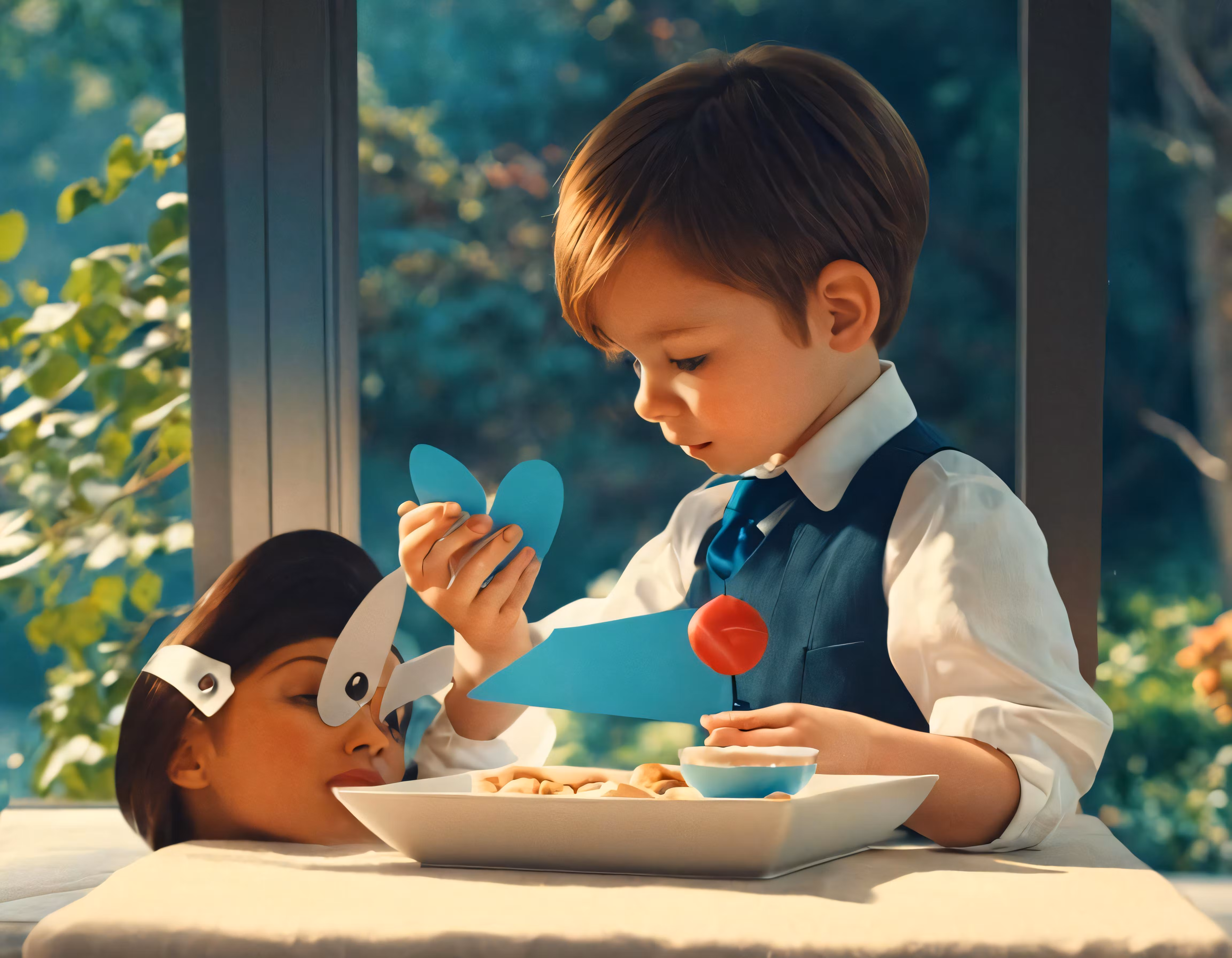 High resolution picture, free to use, a little boy eating cereal off of a plate