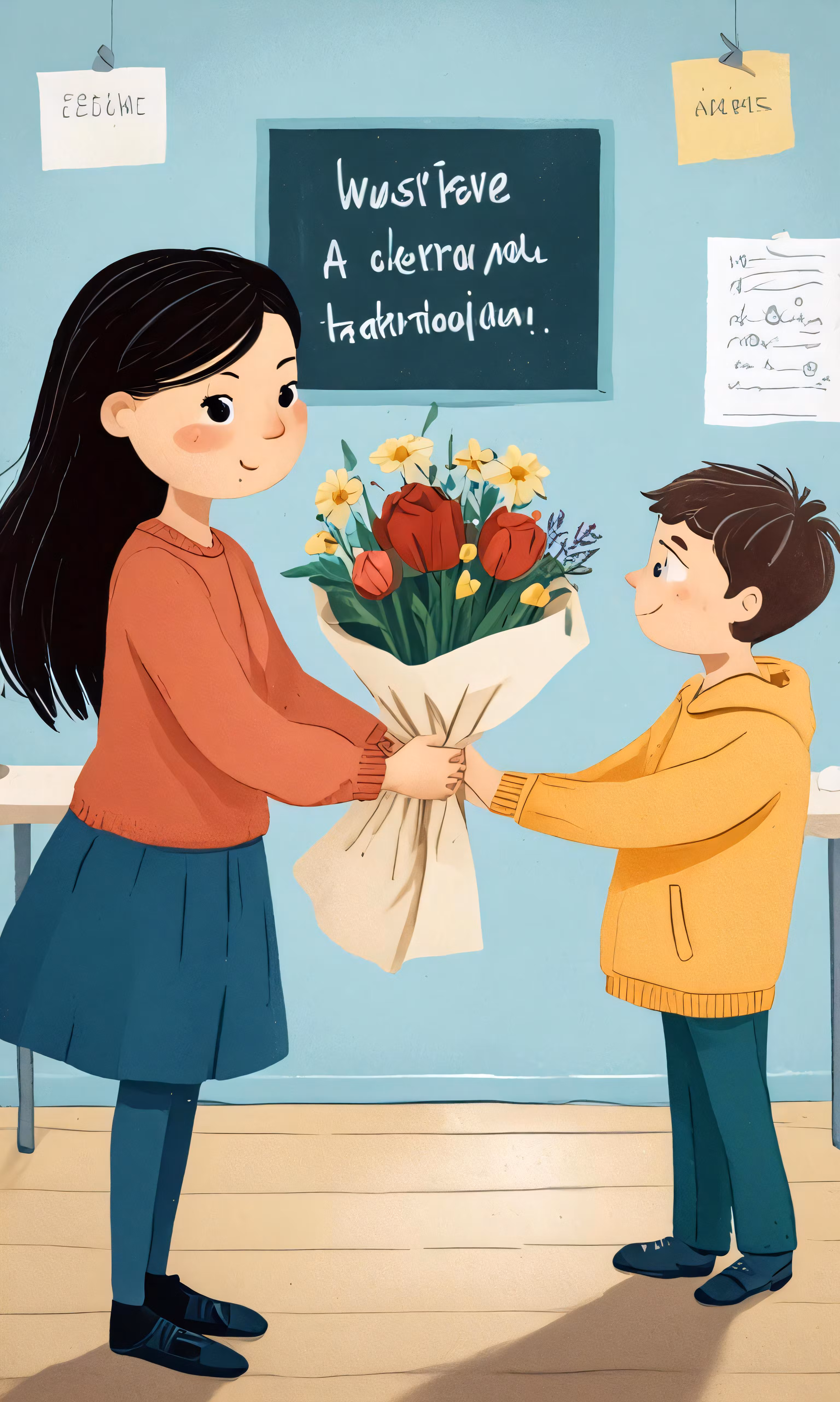 High resolution picture, free to use, a little boy holding flowers next to a little girl
