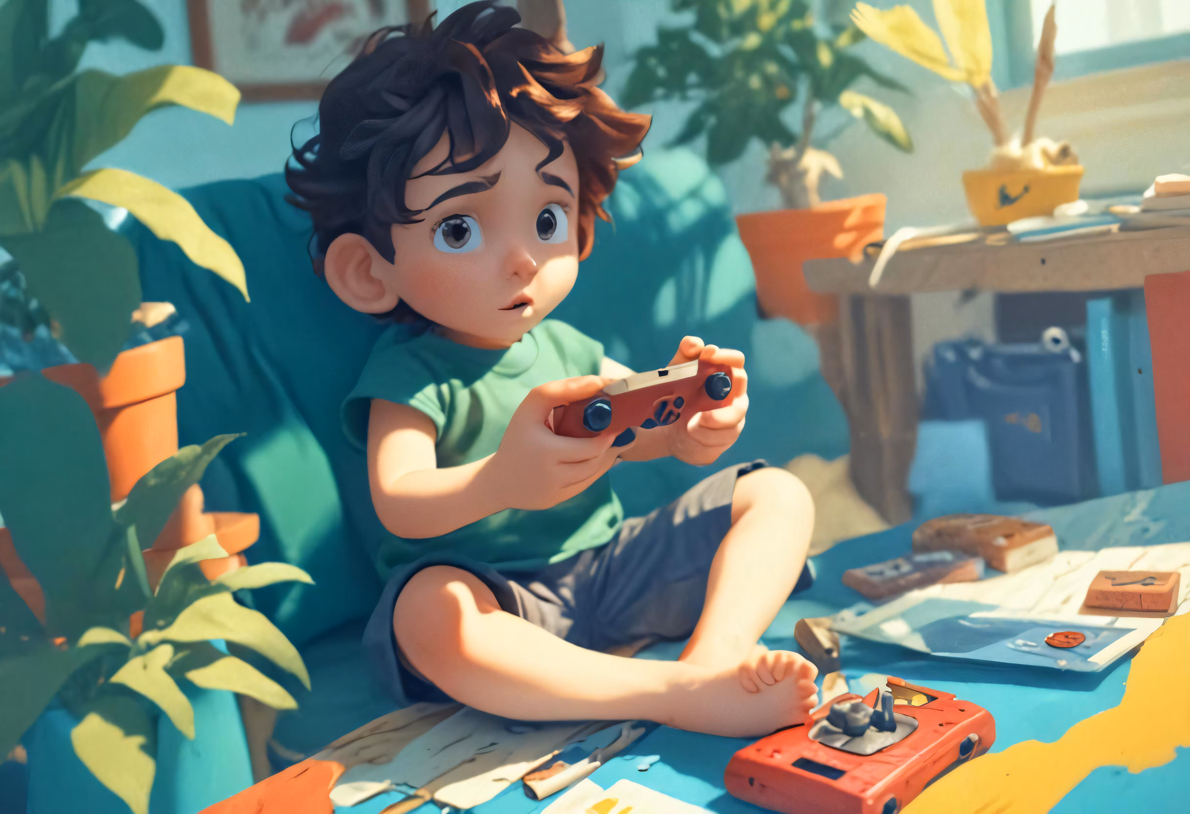 High resolution picture, free to use, a little boy playing with a toy remote controller