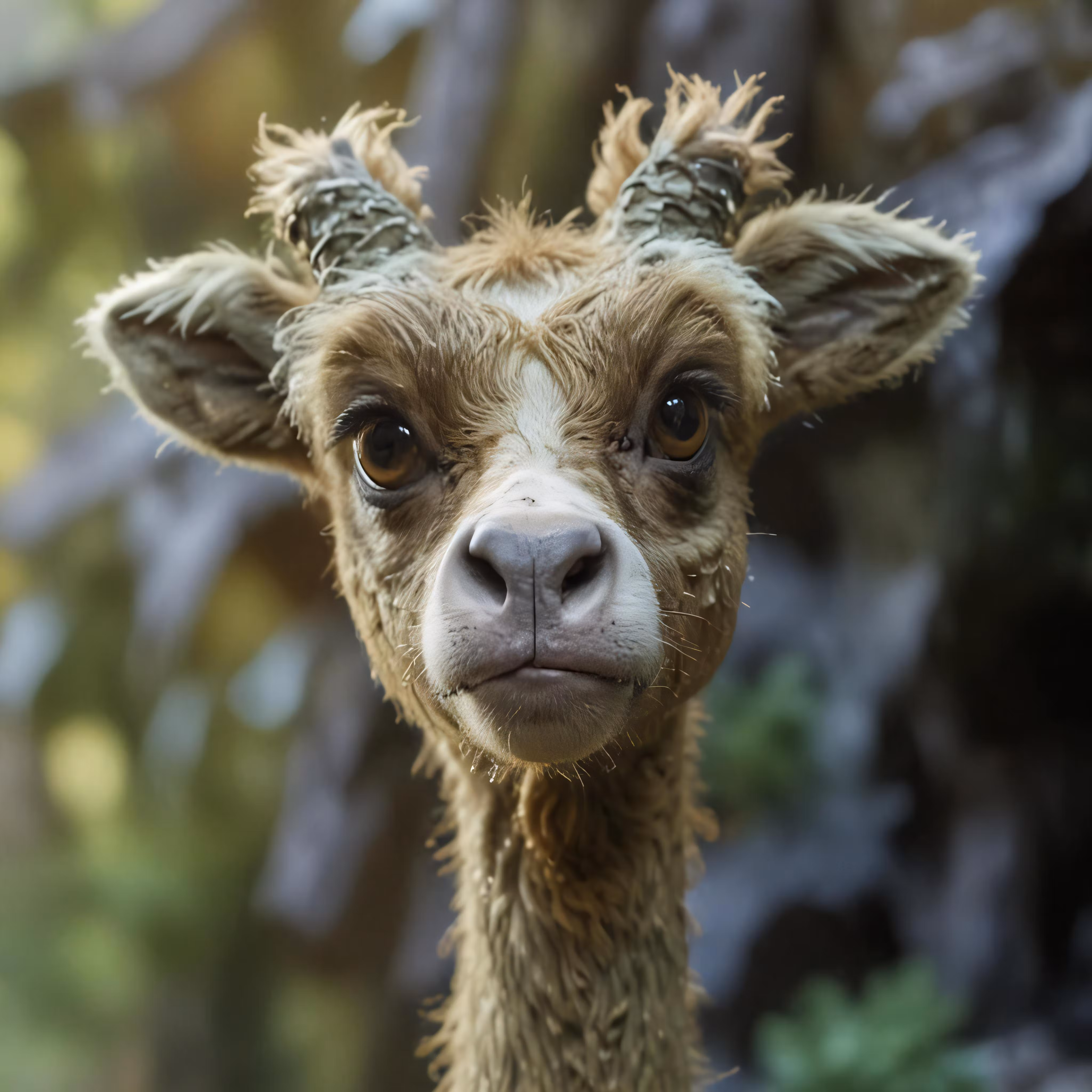 High resolution picture, free to use, a little brown lamaa with horns standing outside