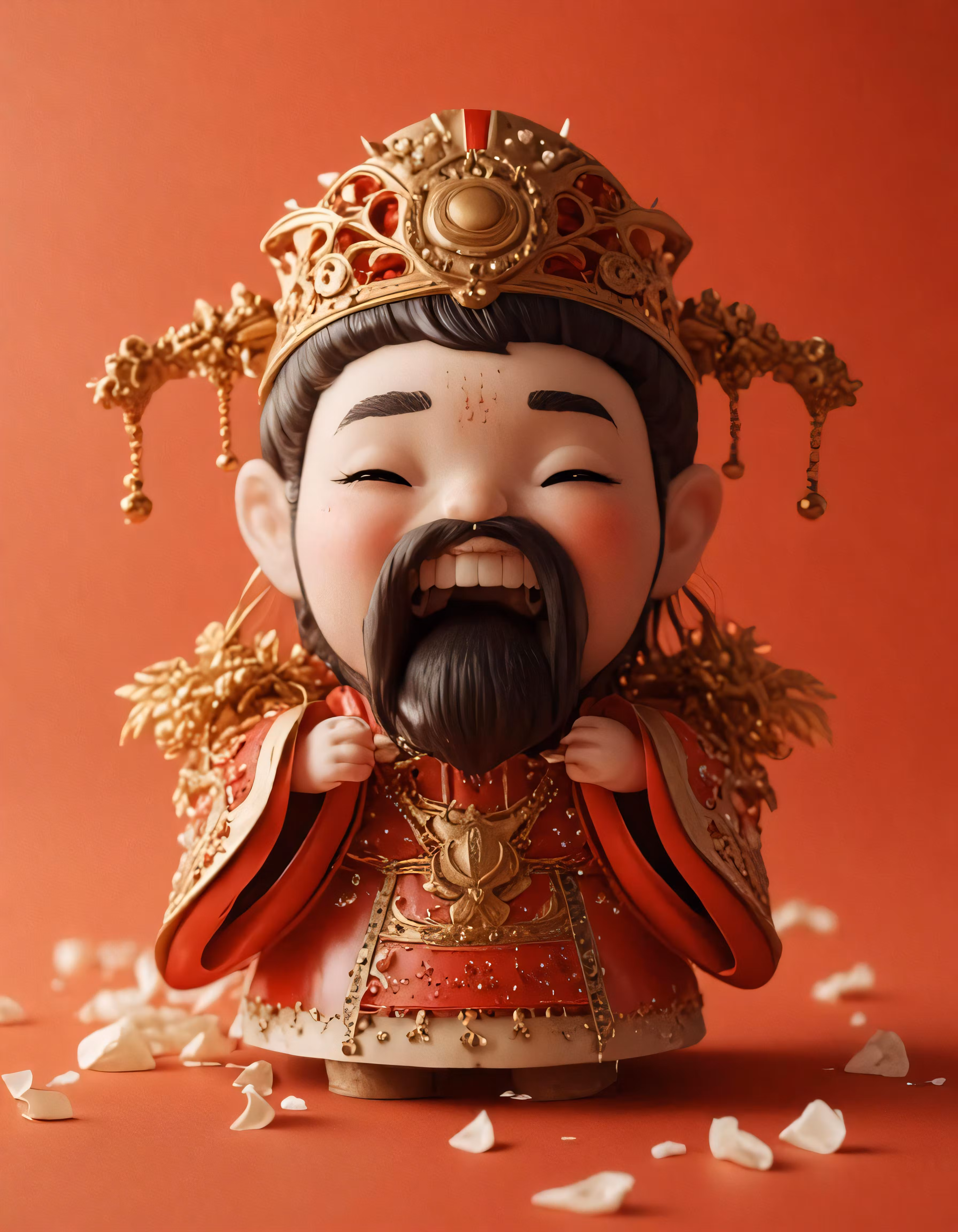 High resolution picture, free to use, a little figurine in a red and gold costume