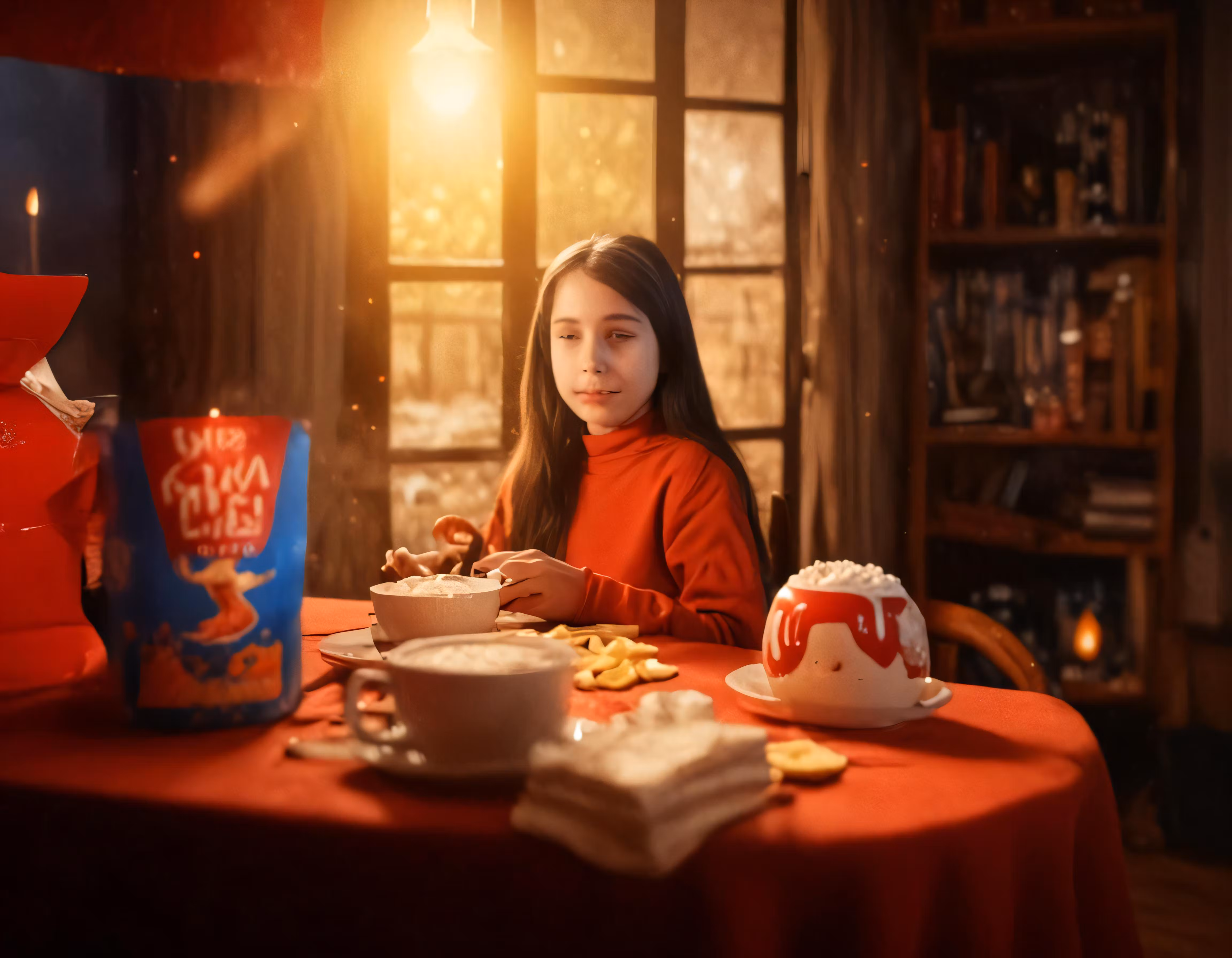 High resolution picture, free to use, a little girl eating some cereal with chocolate on the side