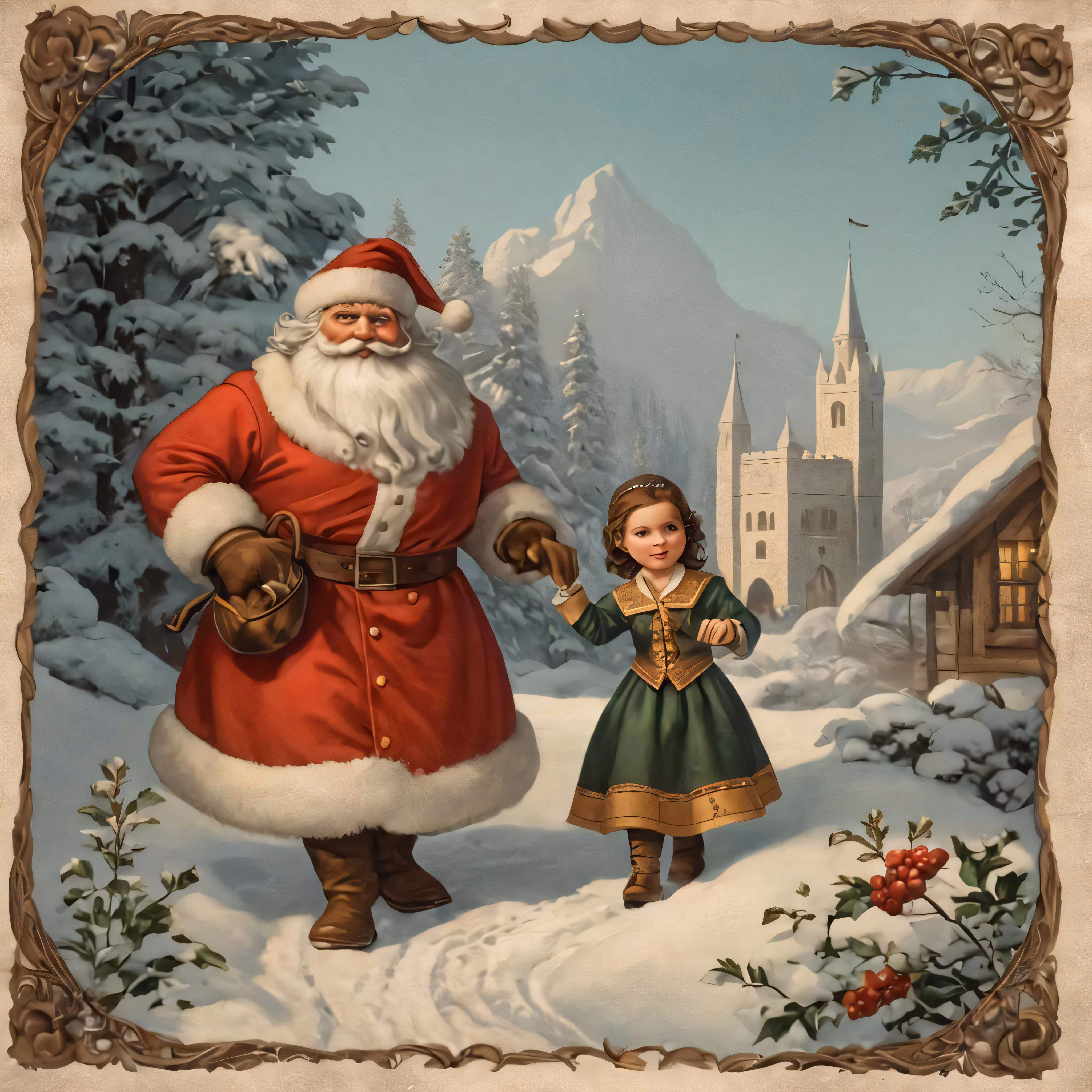 High resolution picture, free to use, a little girl that is next to a santa clause