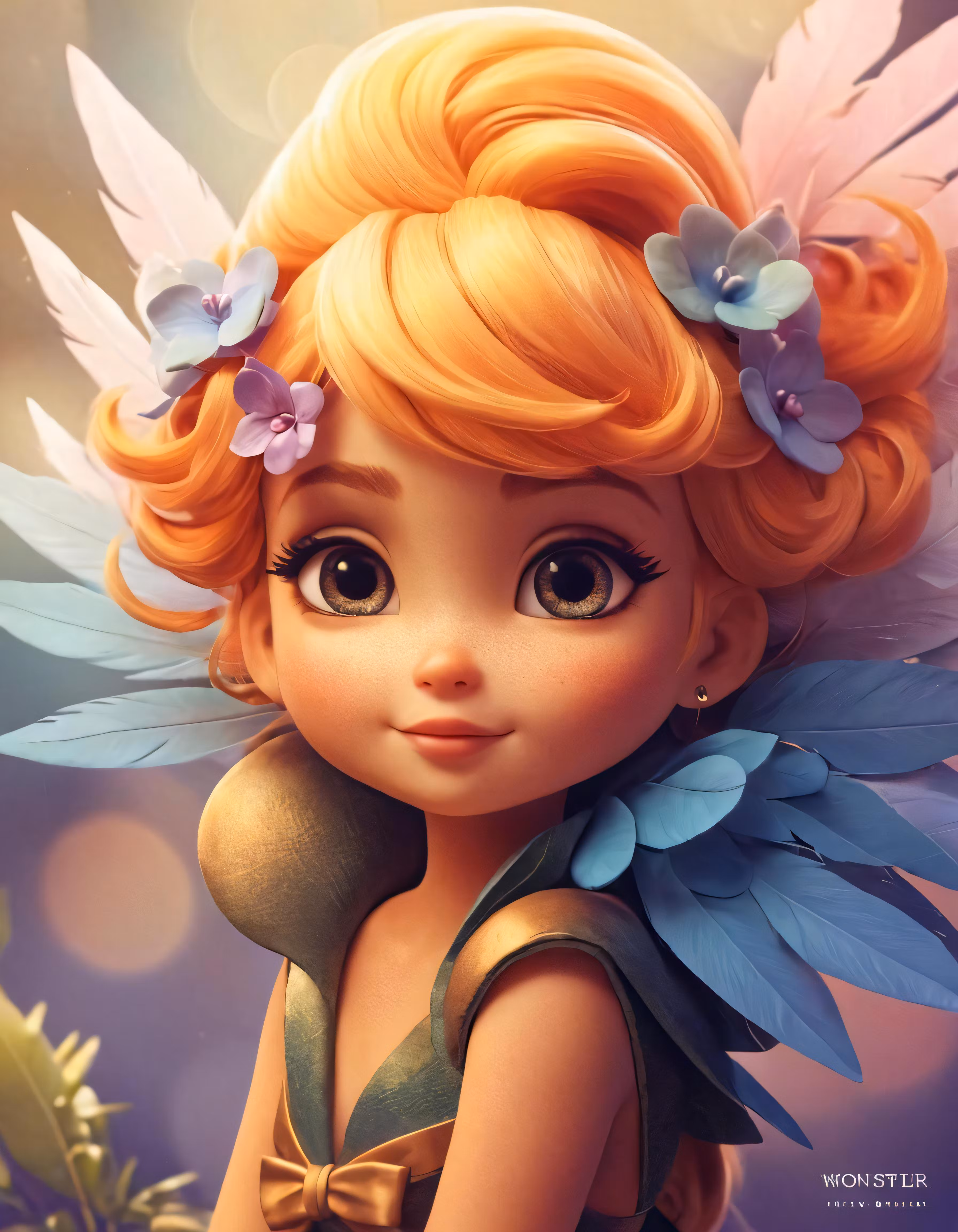High resolution picture, free to use, a little girl with angel wings standing on top of a flower