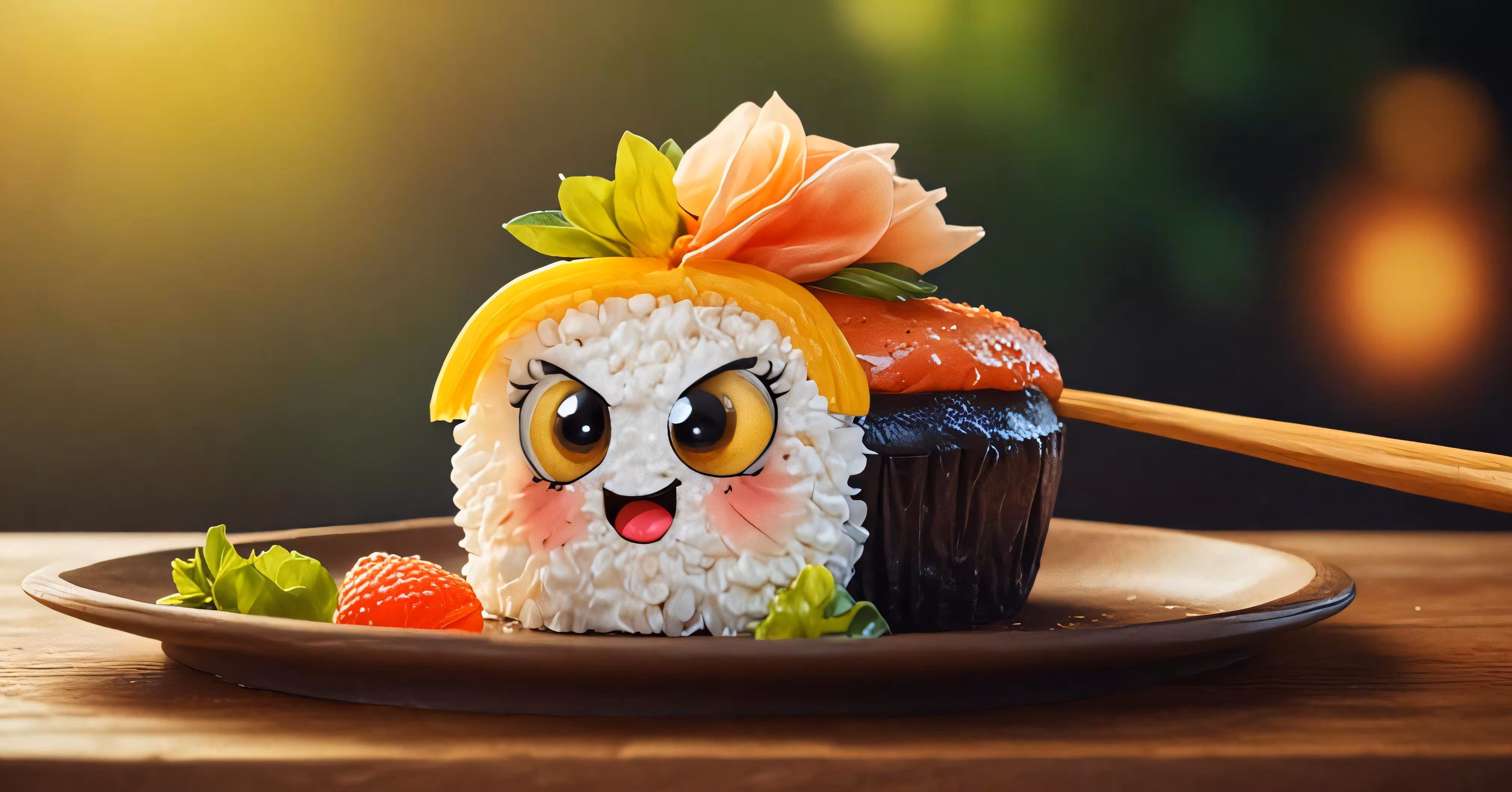 High resolution picture, free to use, a little plate with a sushi toy on it