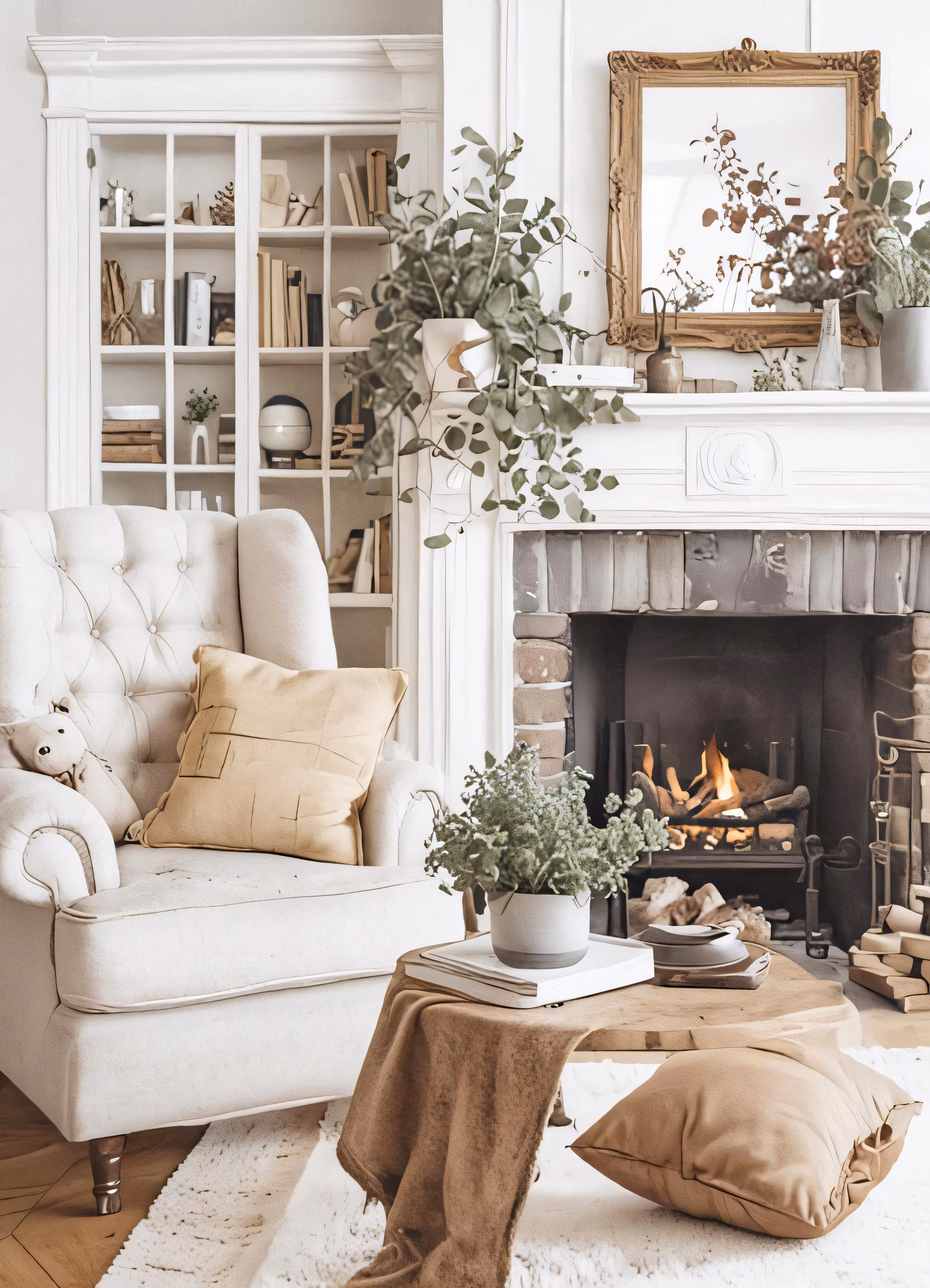 High resolution picture, free to use, a living room filled with furniture and a fire place