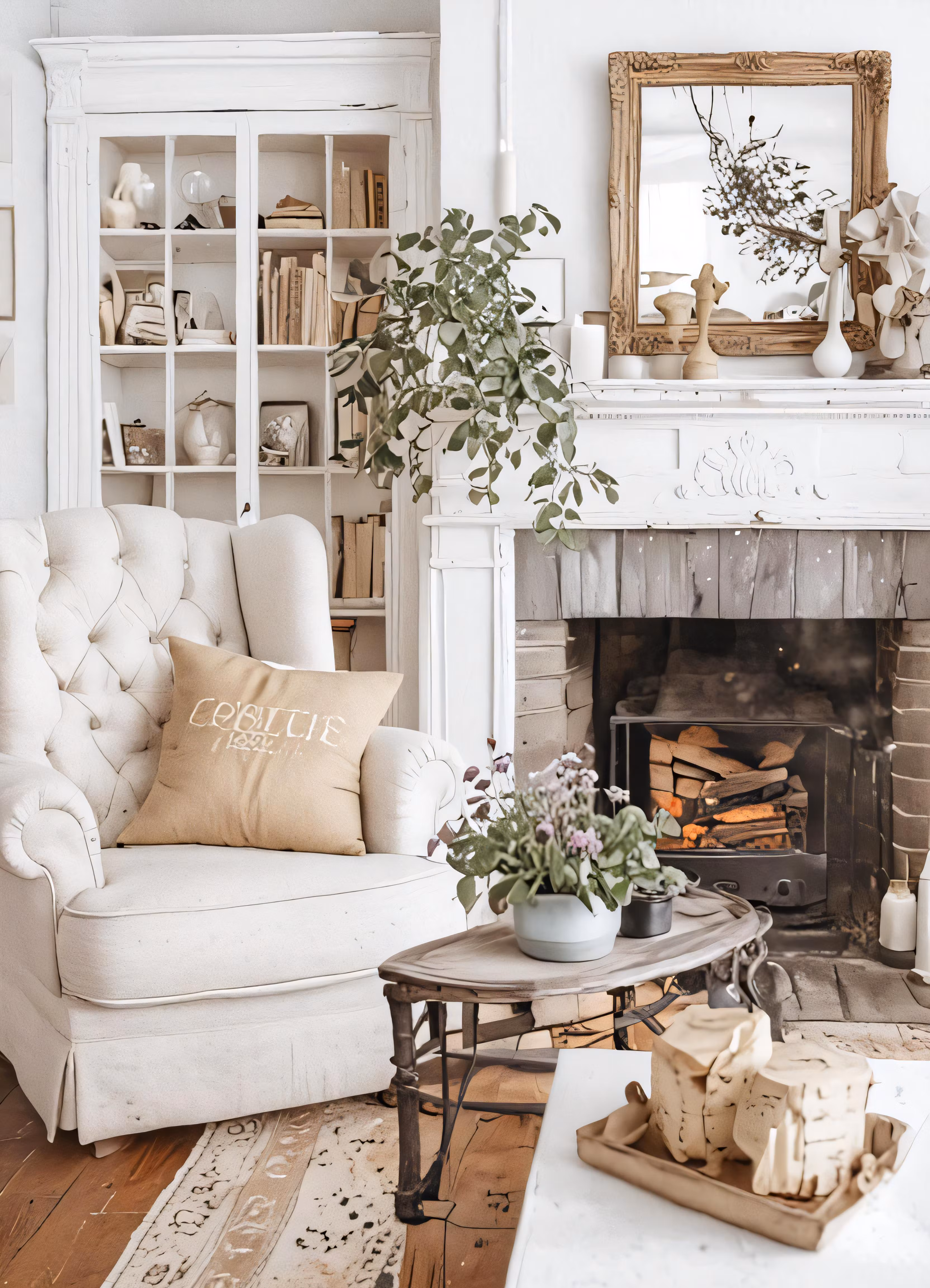High resolution picture, free to use, a living room filled with furniture and a fireplace