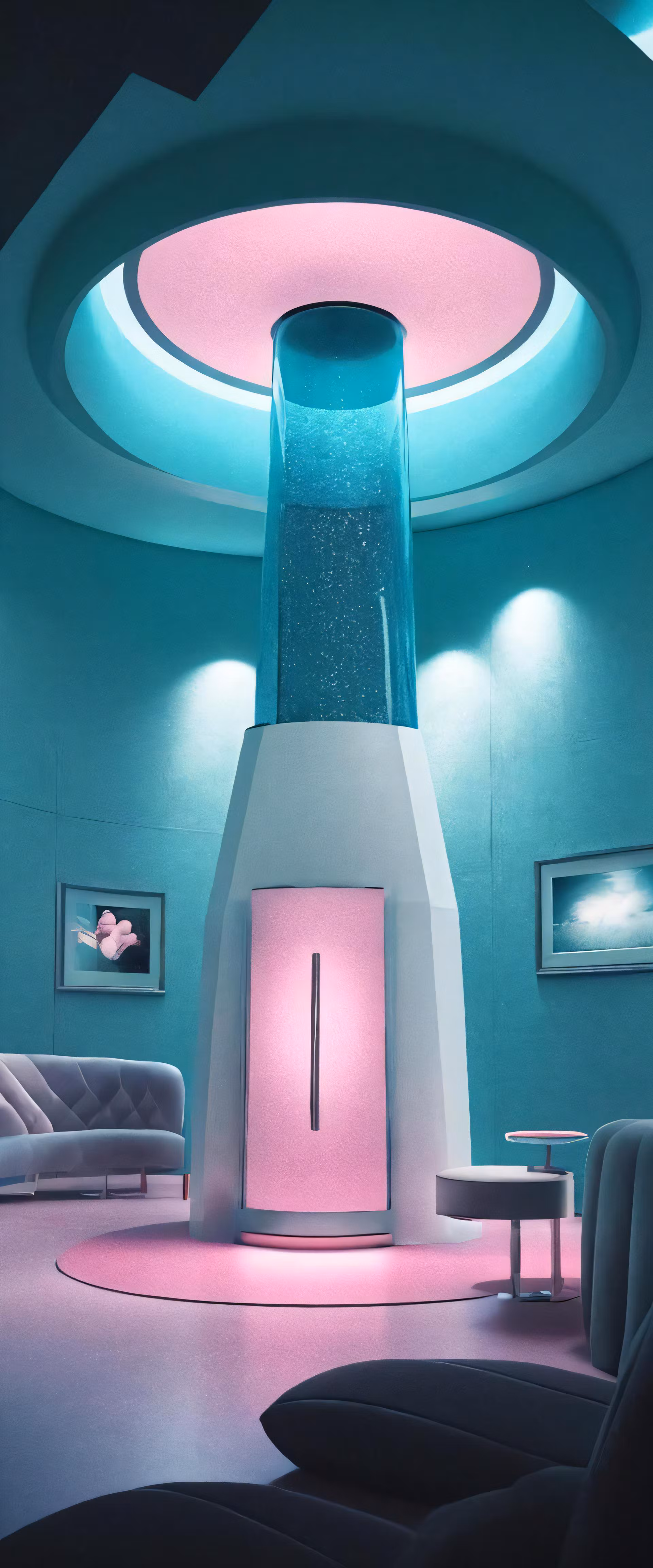High resolution picture, free to use, a living room filled with furniture and lights