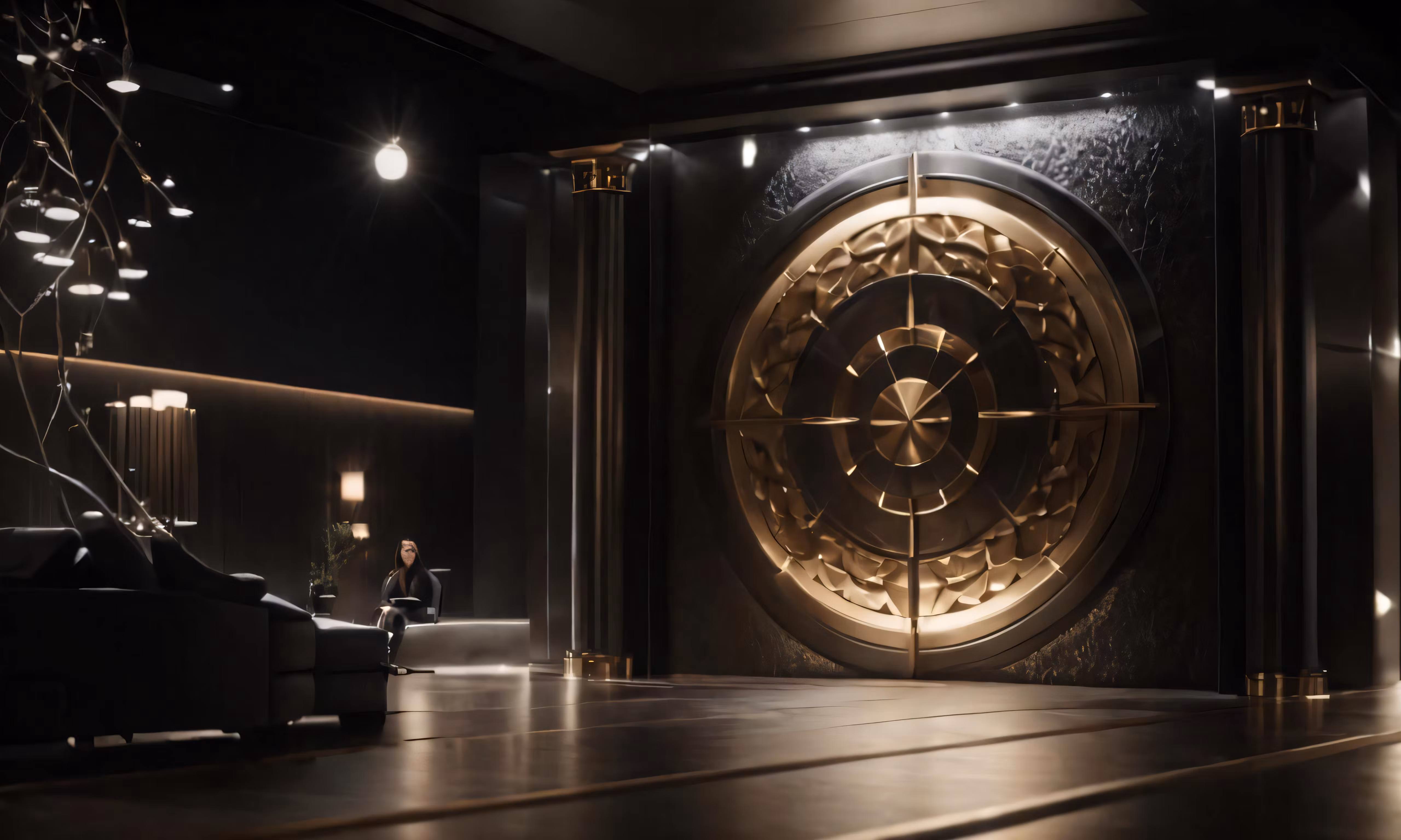 High resolution picture, free to use, a living room with a spiraly circular iron sculpture