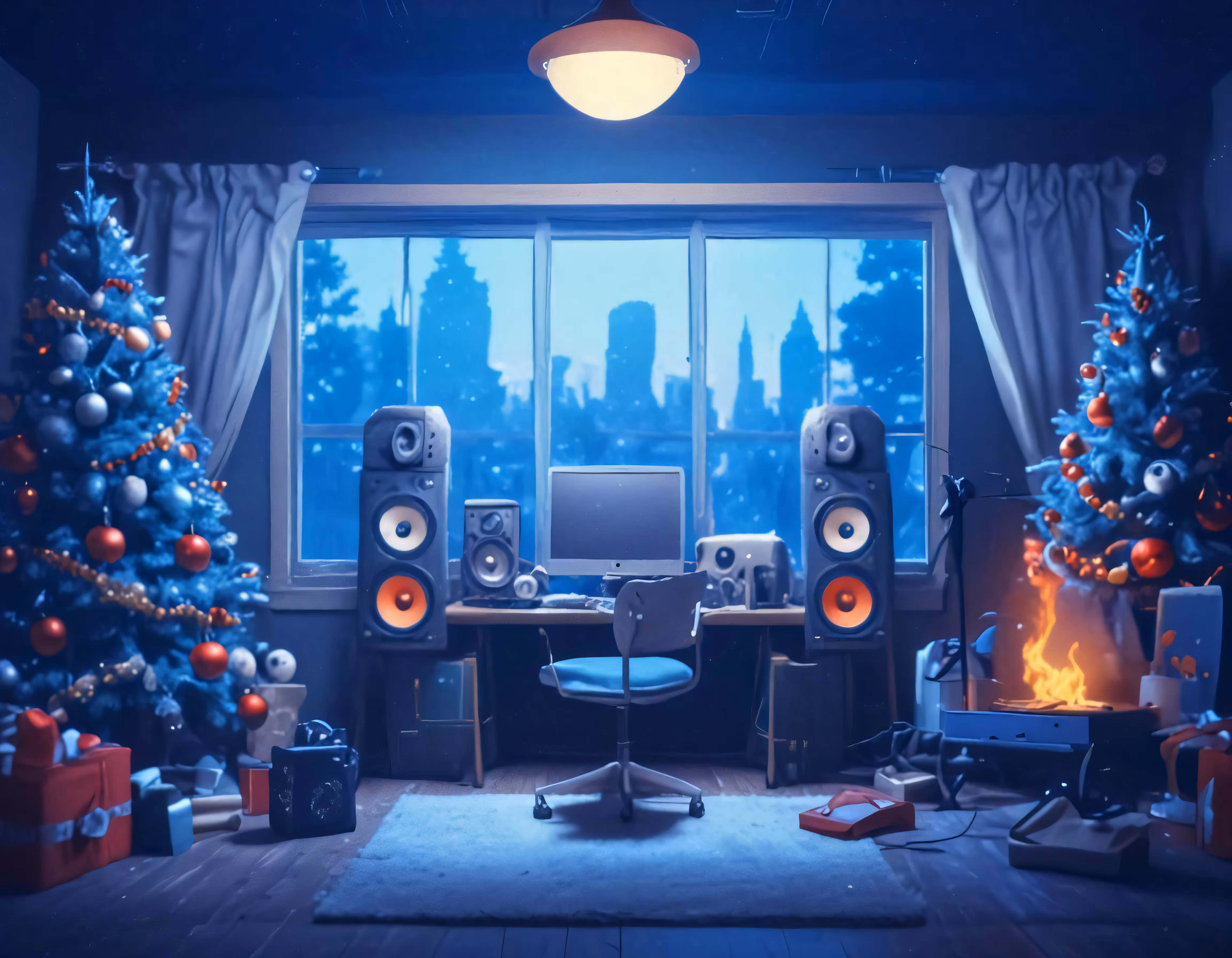 High resolution picture, free to use, a living room with many christmas presents