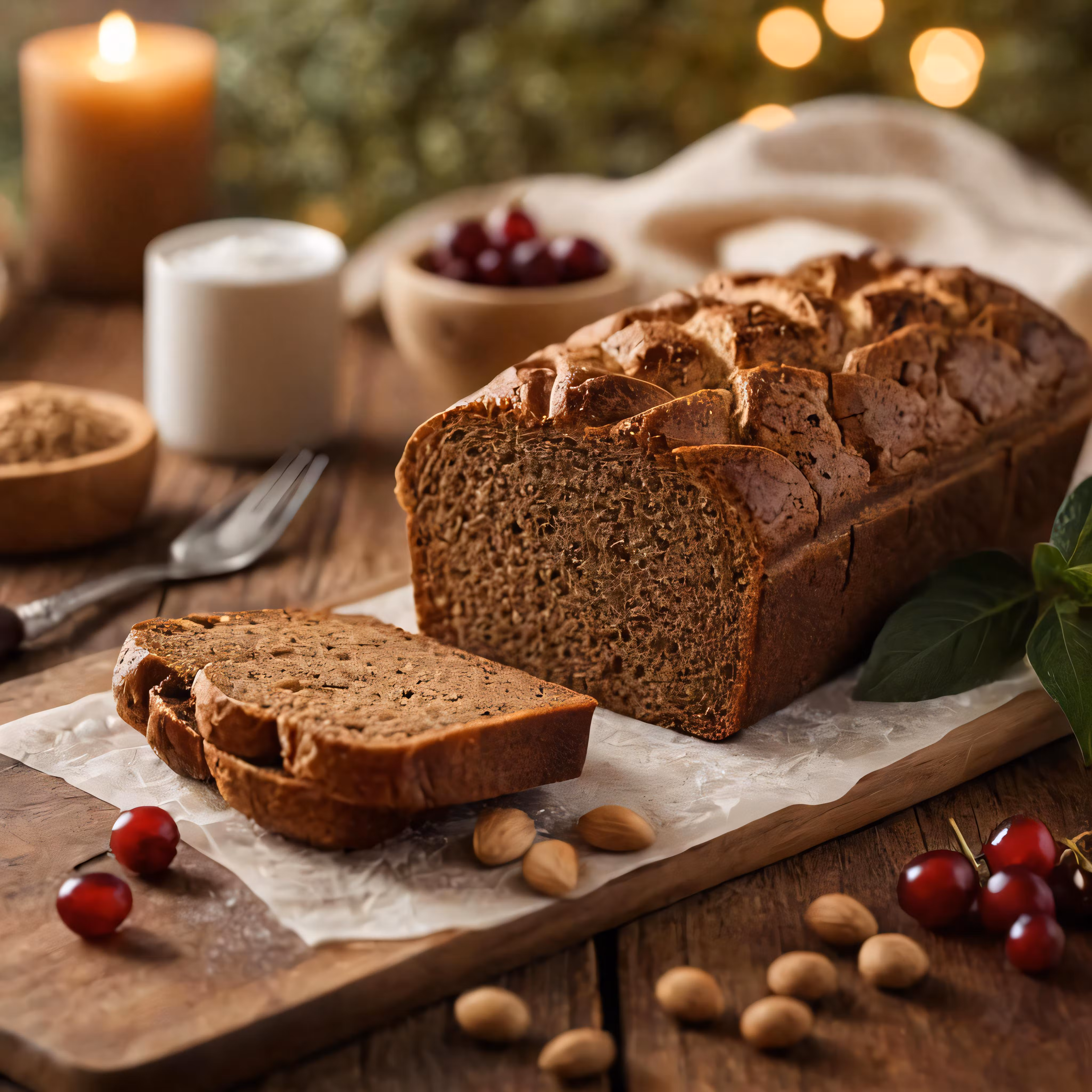 High resolution picture, free to use, a loaf of bread sits on a table surrounded by nuts