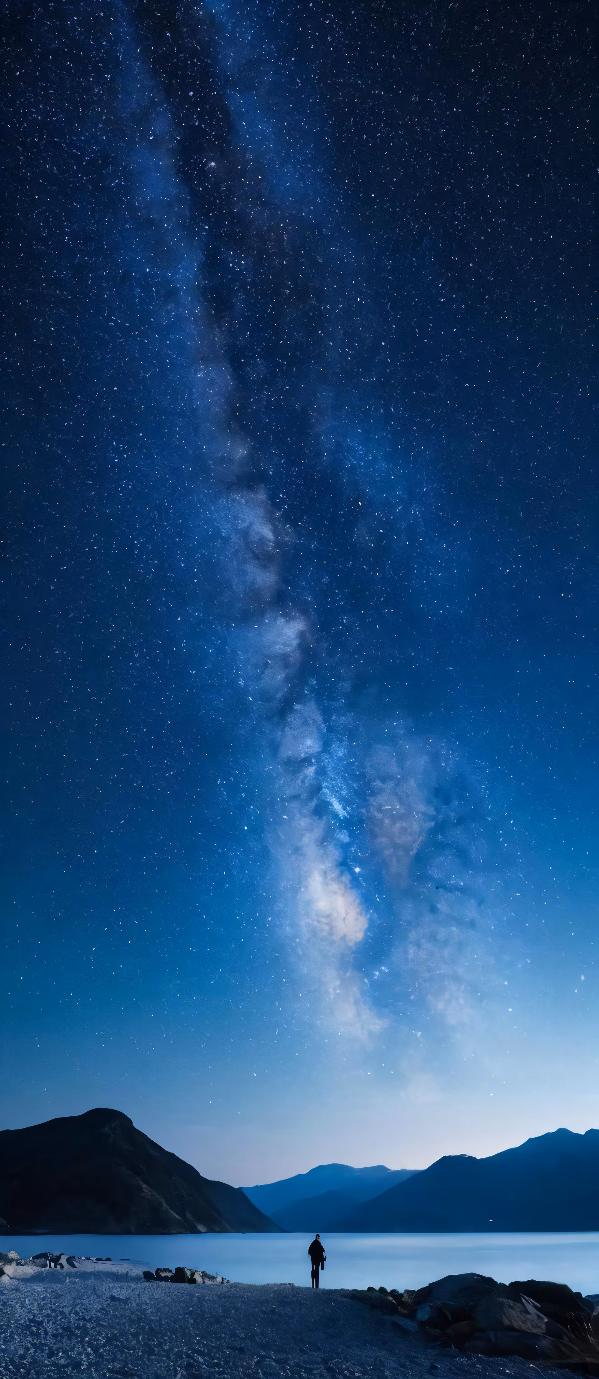 High resolution picture, free to use, a lone figure standing in front of a night sky