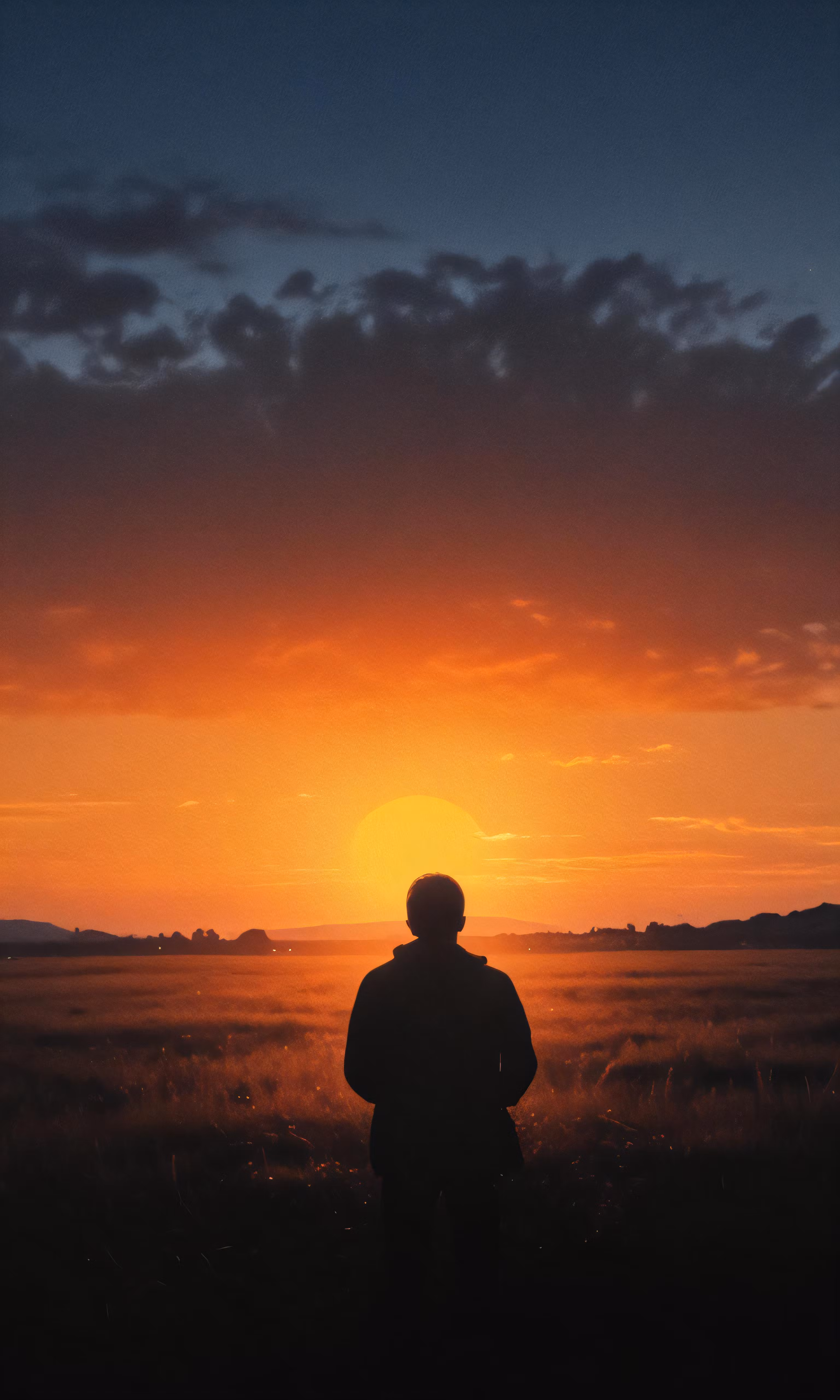High resolution picture, free to use, a lone person standing on top of a grass covered field