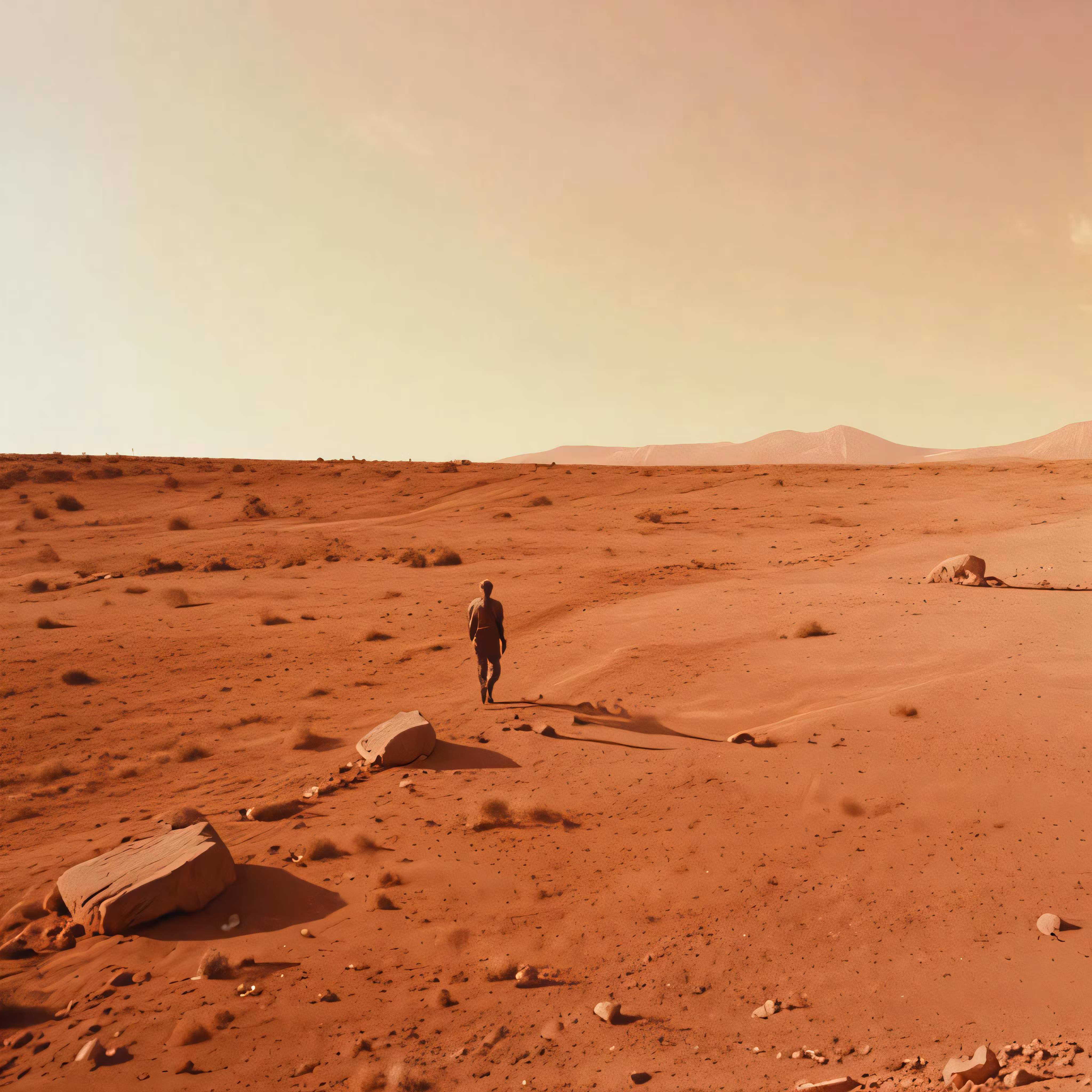 High resolution picture, free to use, a lone person walking through the desert with no grass on it