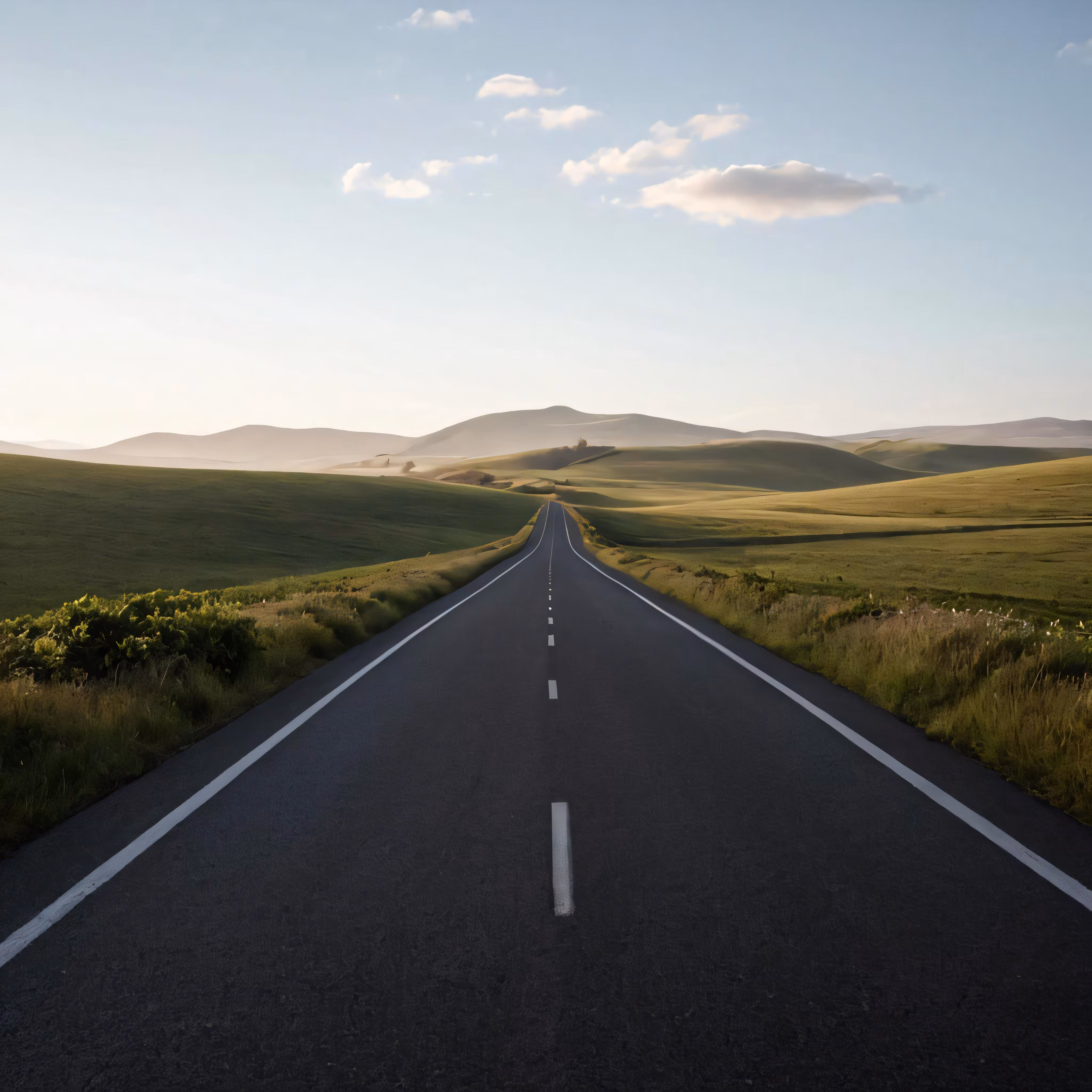 High resolution picture, free to use, a lonely stretch of highway with several white lanes in the middle