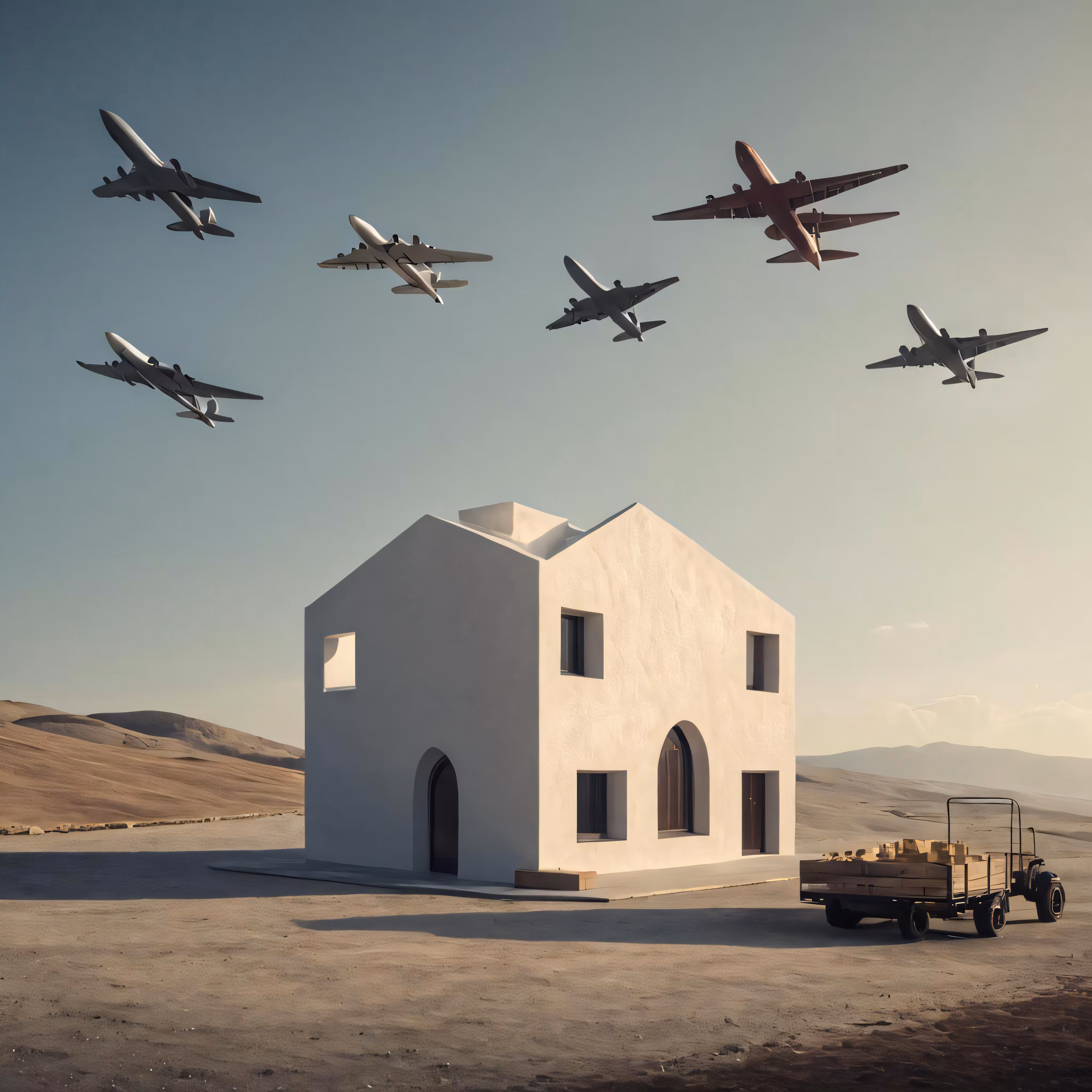 High resolution picture, free to use, a lot of planes that are flying over a building