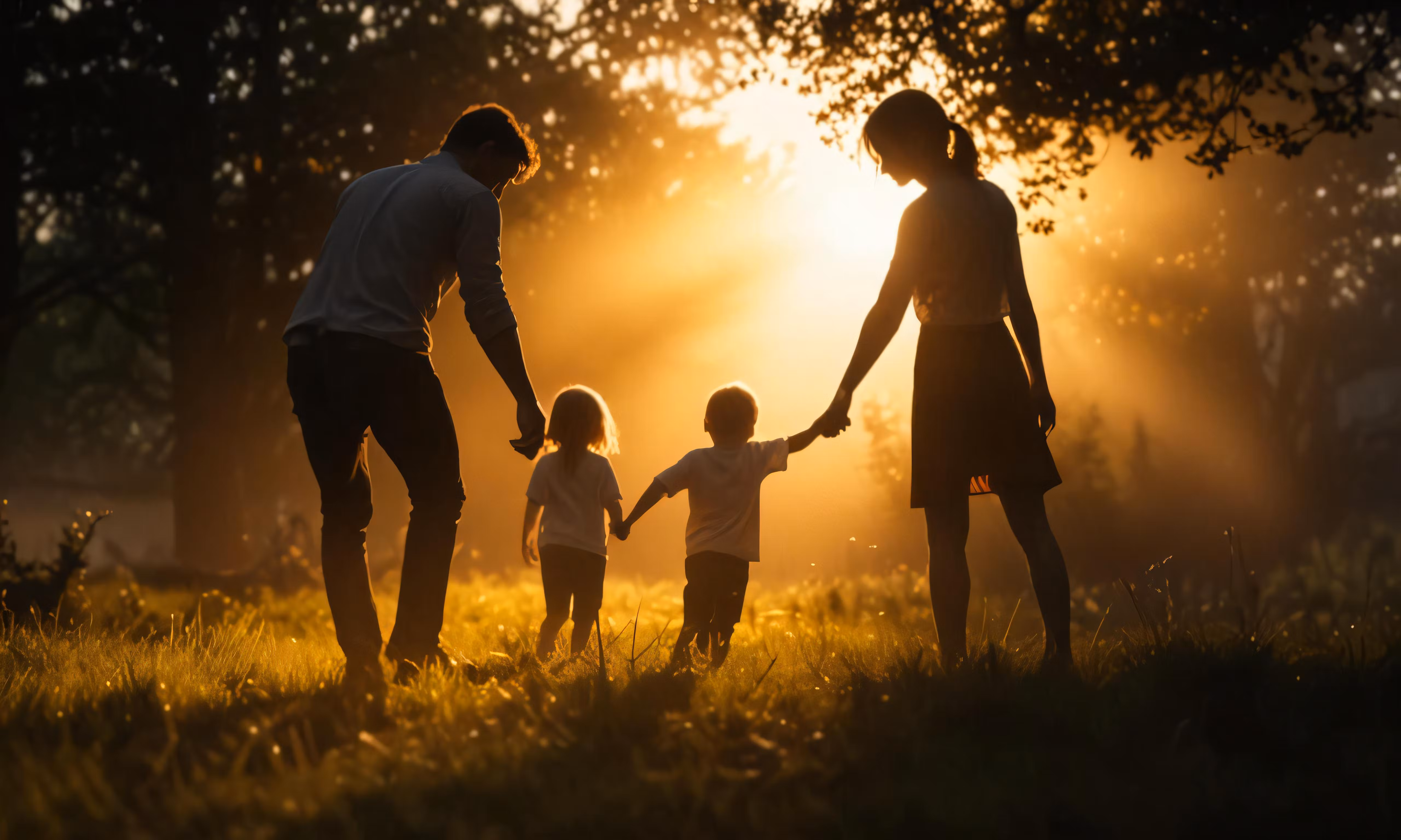 High resolution picture, free to use, a man, woman and child are standing in the grass