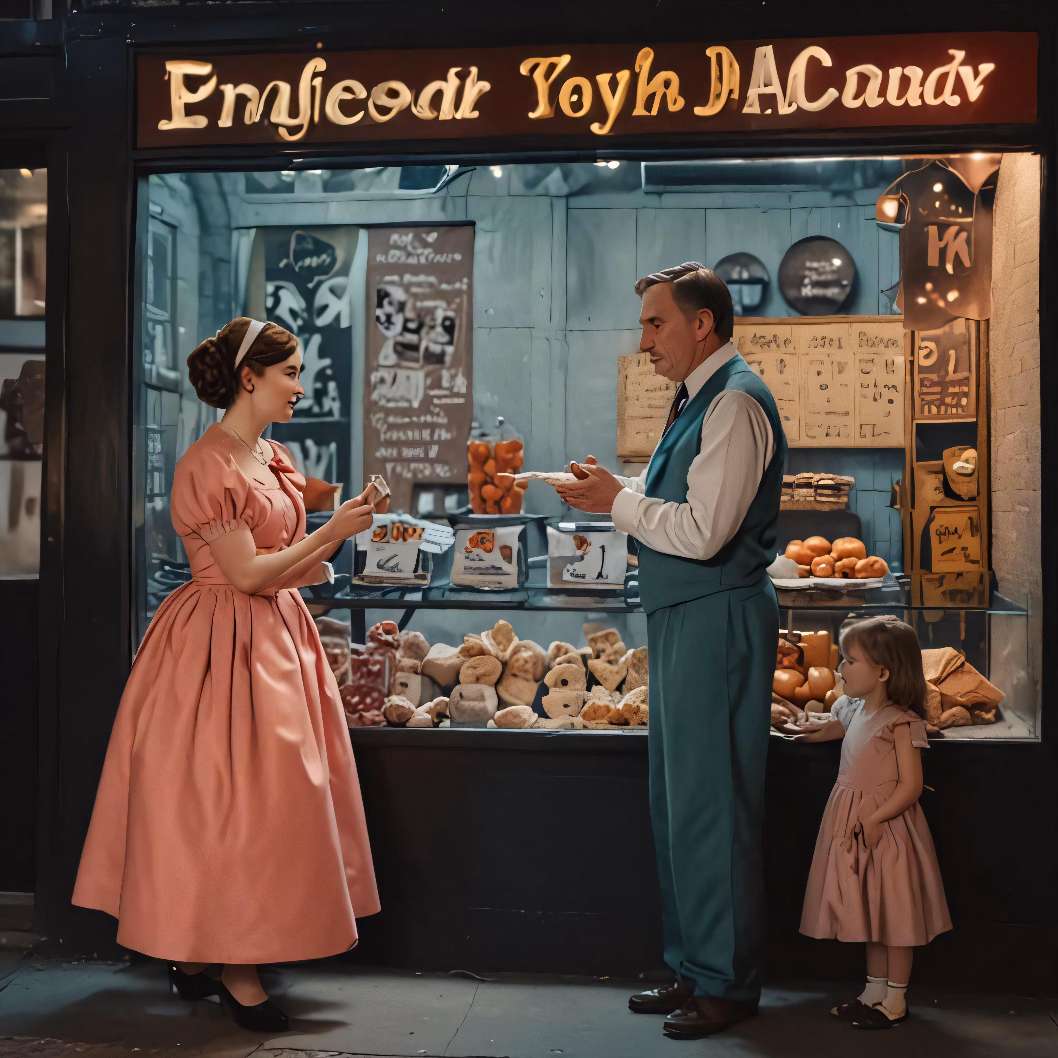 High resolution picture, free to use, a man and a woman are exchanging drinks in front of a shop