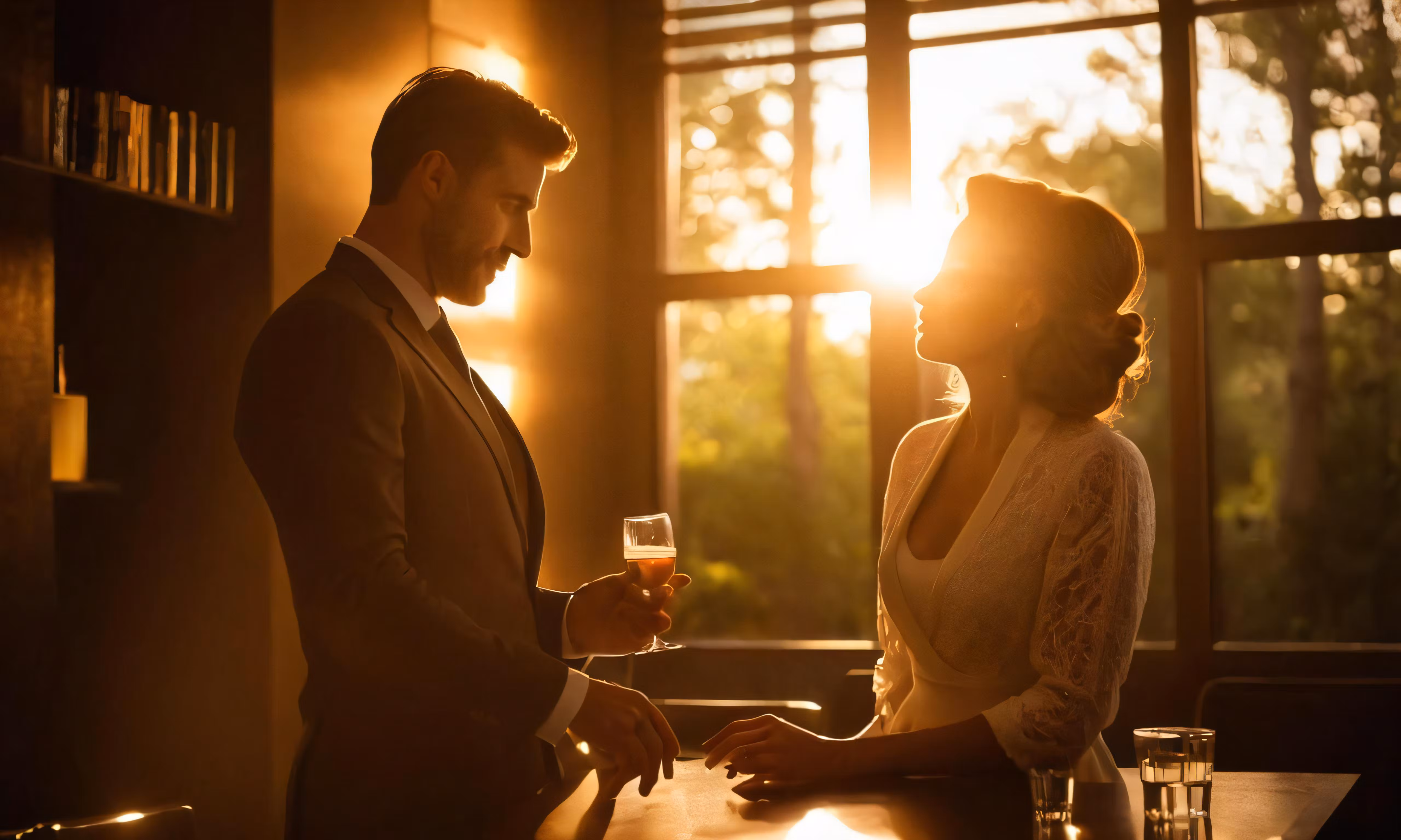 High resolution picture, free to use, a man and a woman standing by a bar
