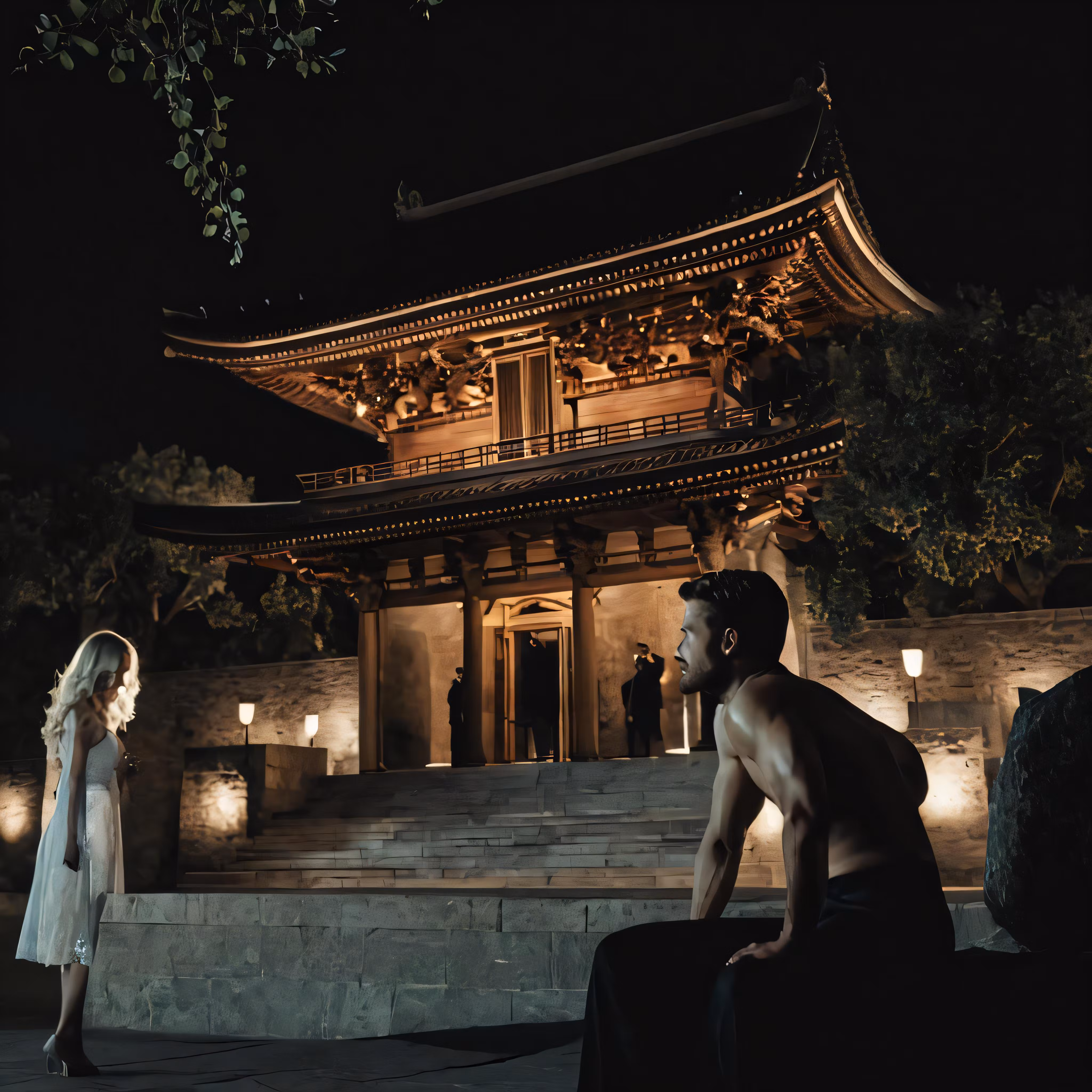High resolution picture, free to use, a man and a woman standing near a stone structure