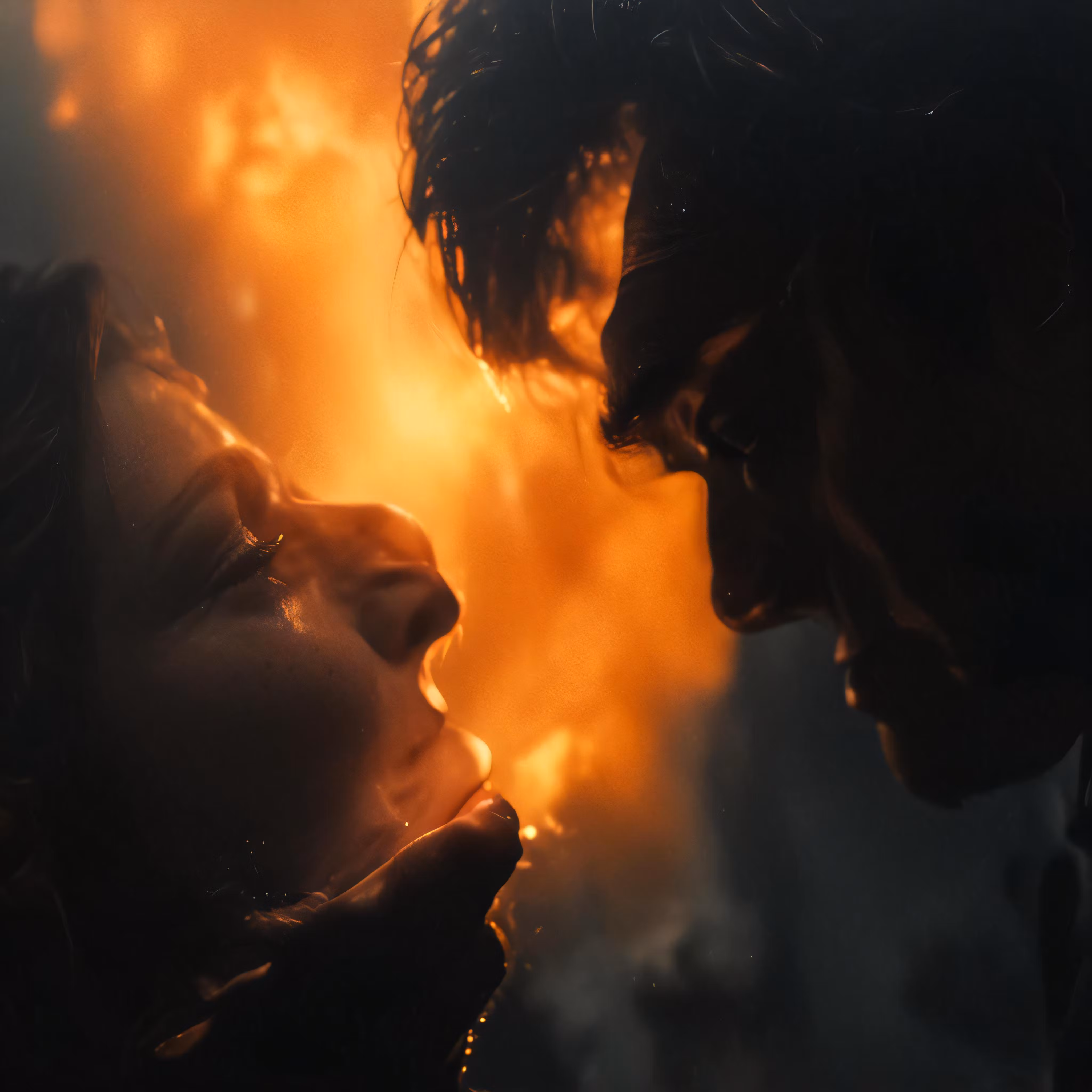 High resolution picture, free to use, a man and woman in the midst of fire