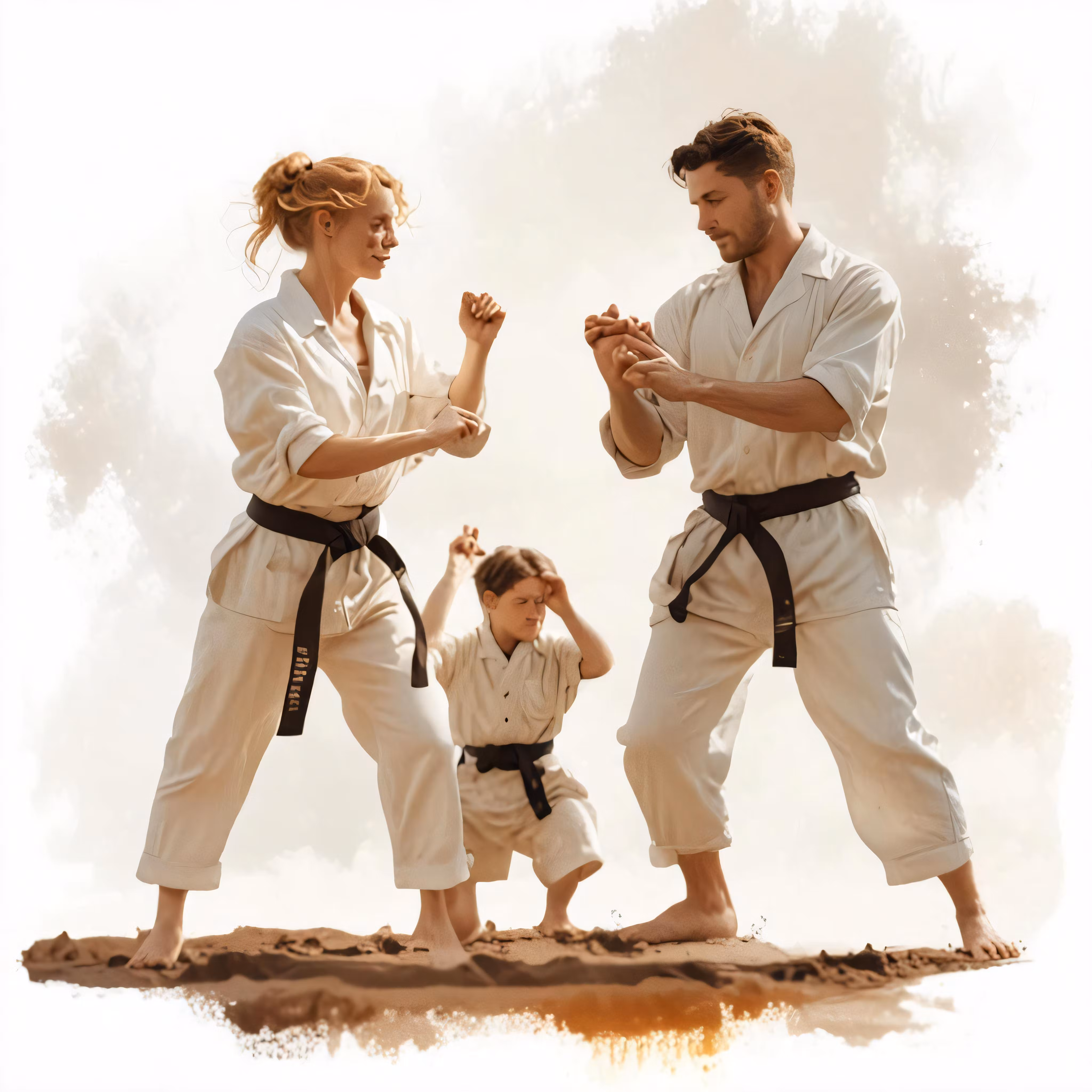 High resolution picture, free to use, a man and woman performing karate on top of a rock