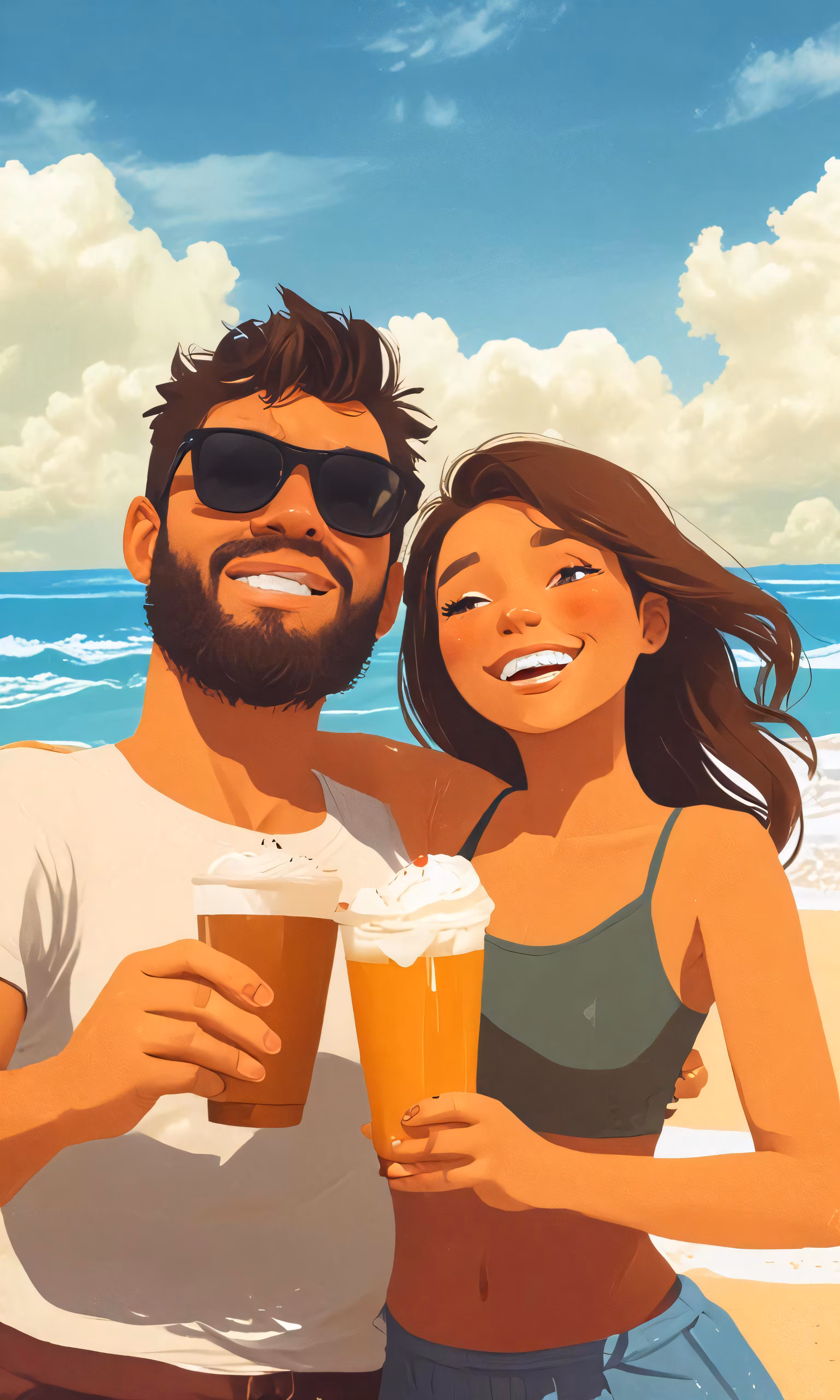 High resolution picture, free to use, a man and woman smile at the camera while holding a beverage
