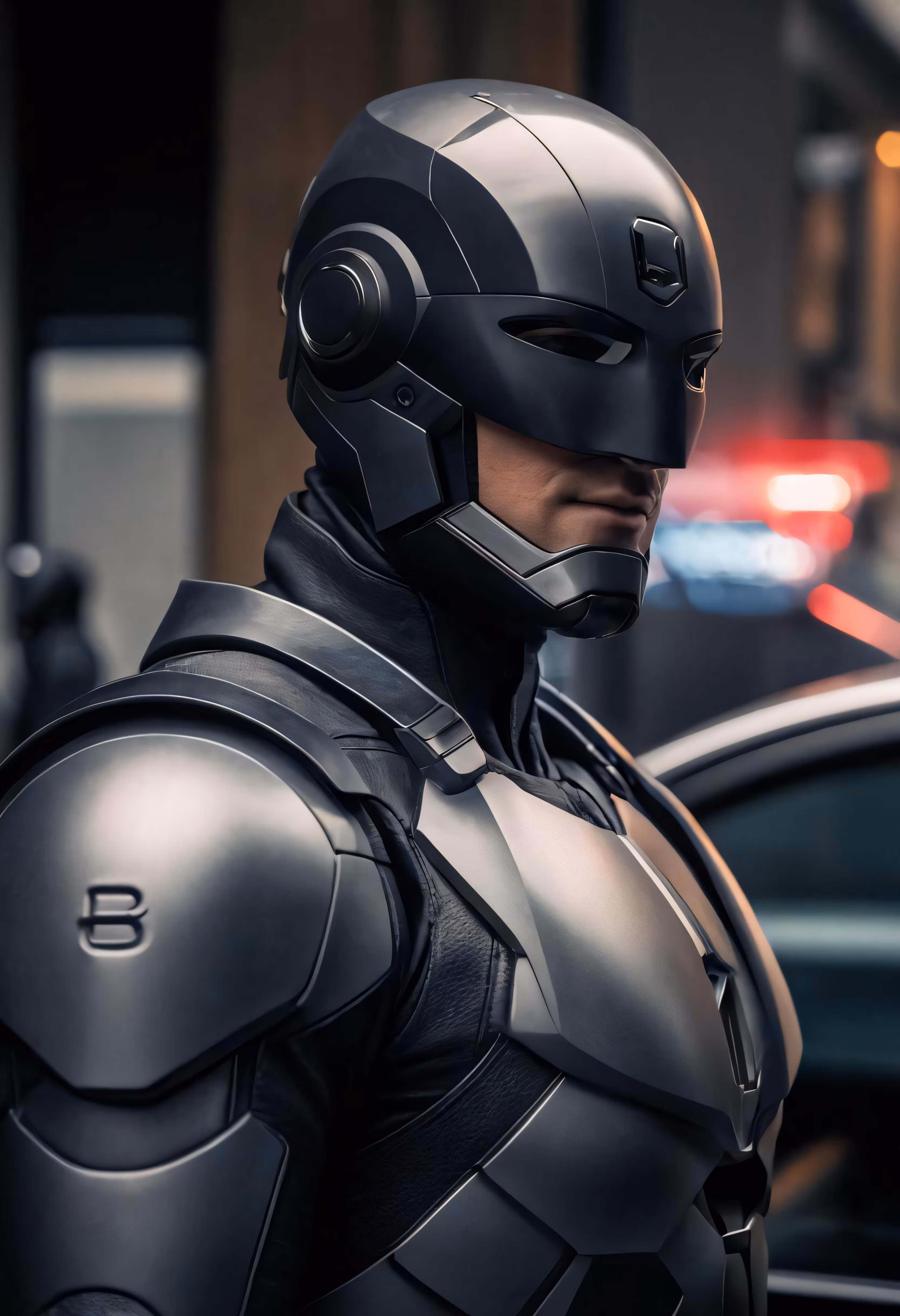 High resolution picture, free to use, a man dressed as batman stands in a street