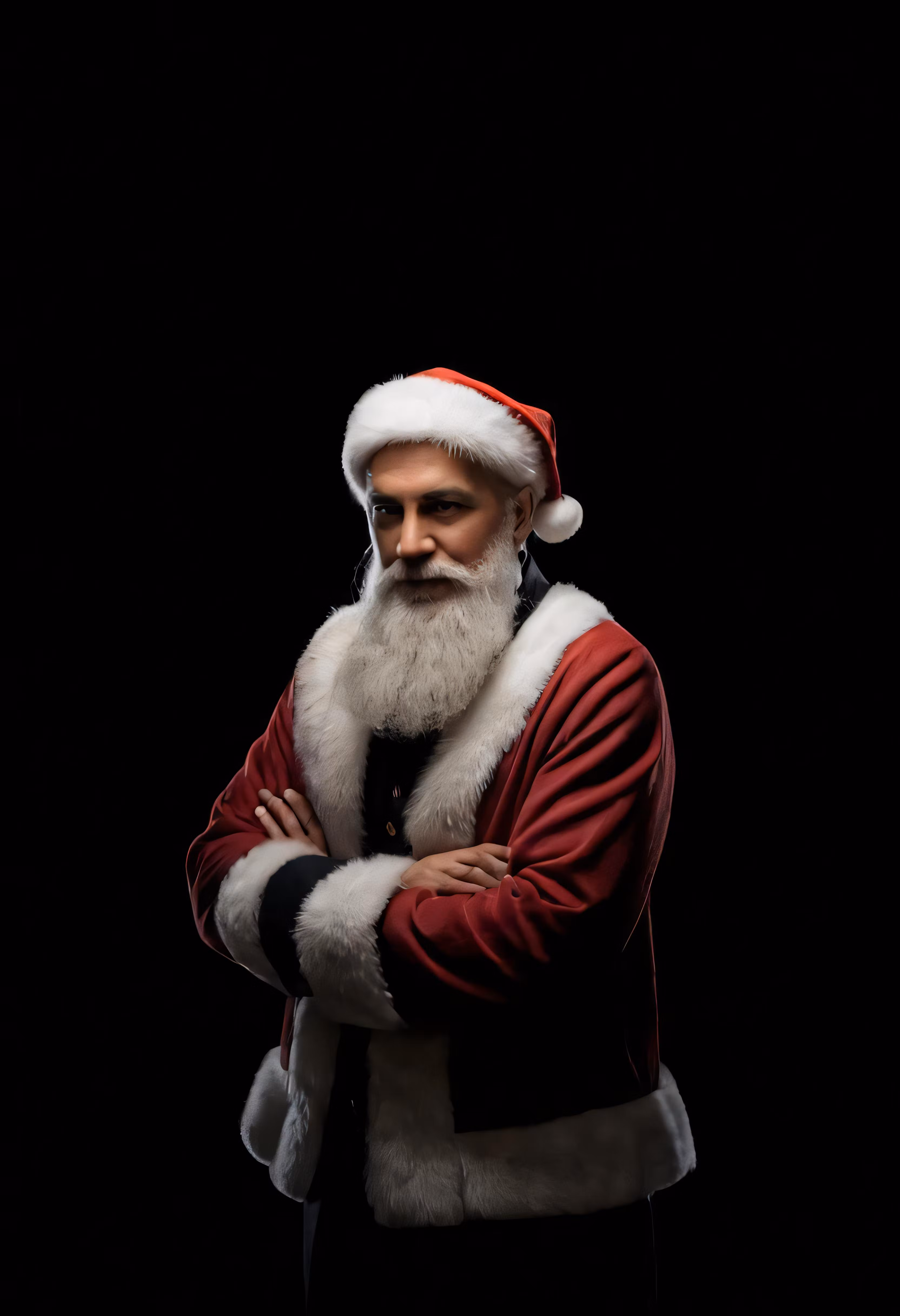 High resolution picture, free to use, a man dressed as santa claus is posing for a photo