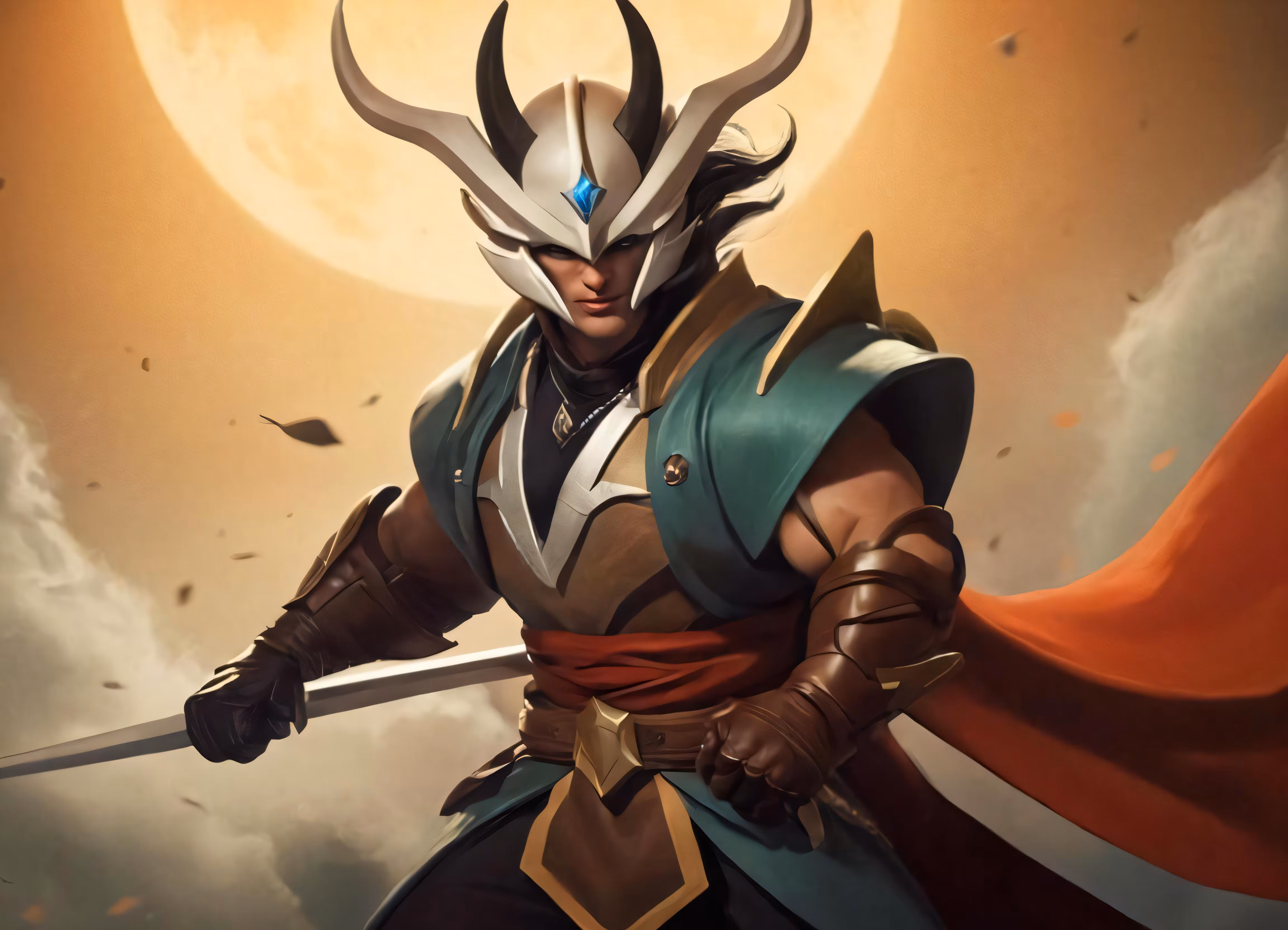 High resolution picture, free to use, a man dressed in armor holding a sword