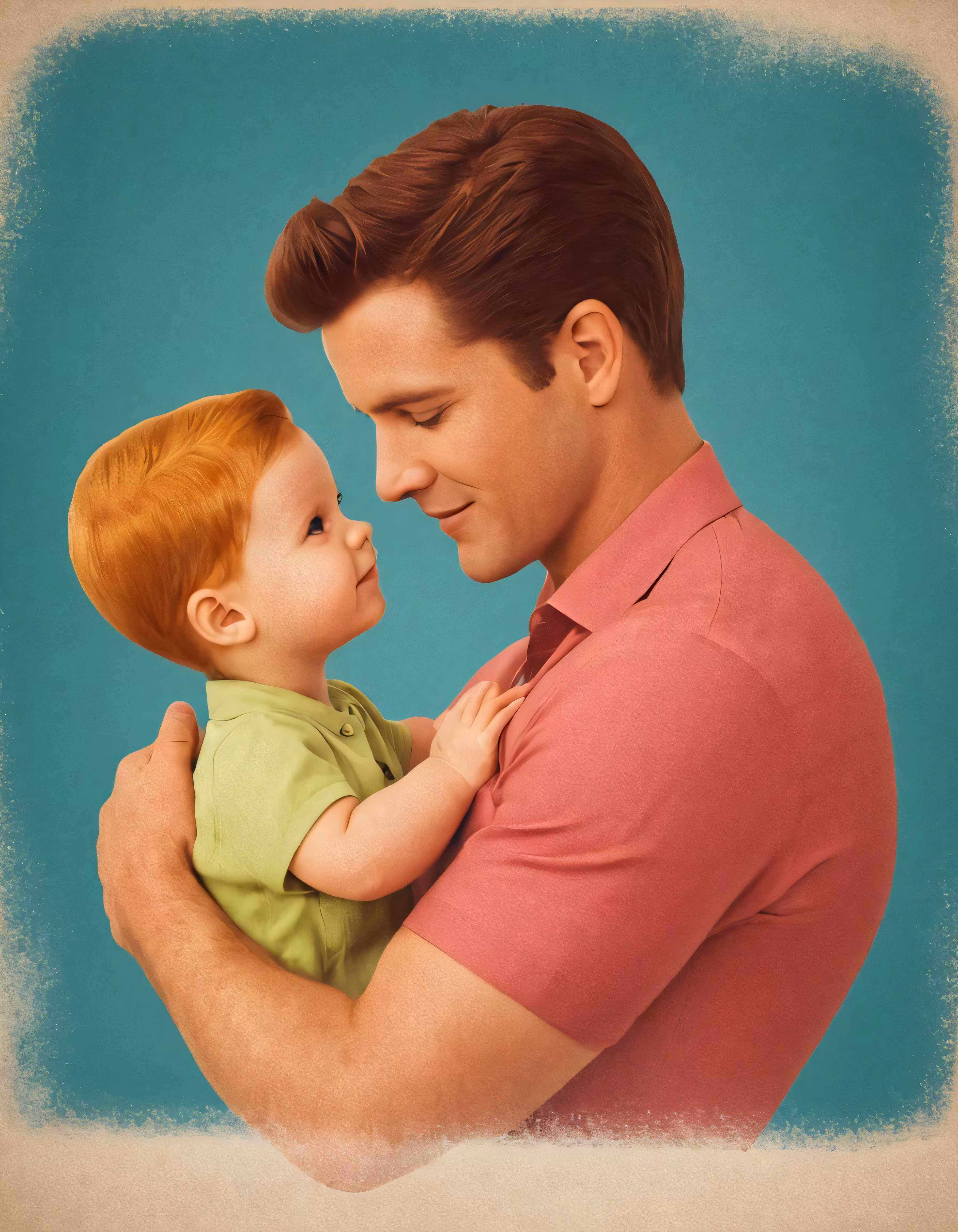 High resolution picture, free to use, a man holding a baby with a pink shirt