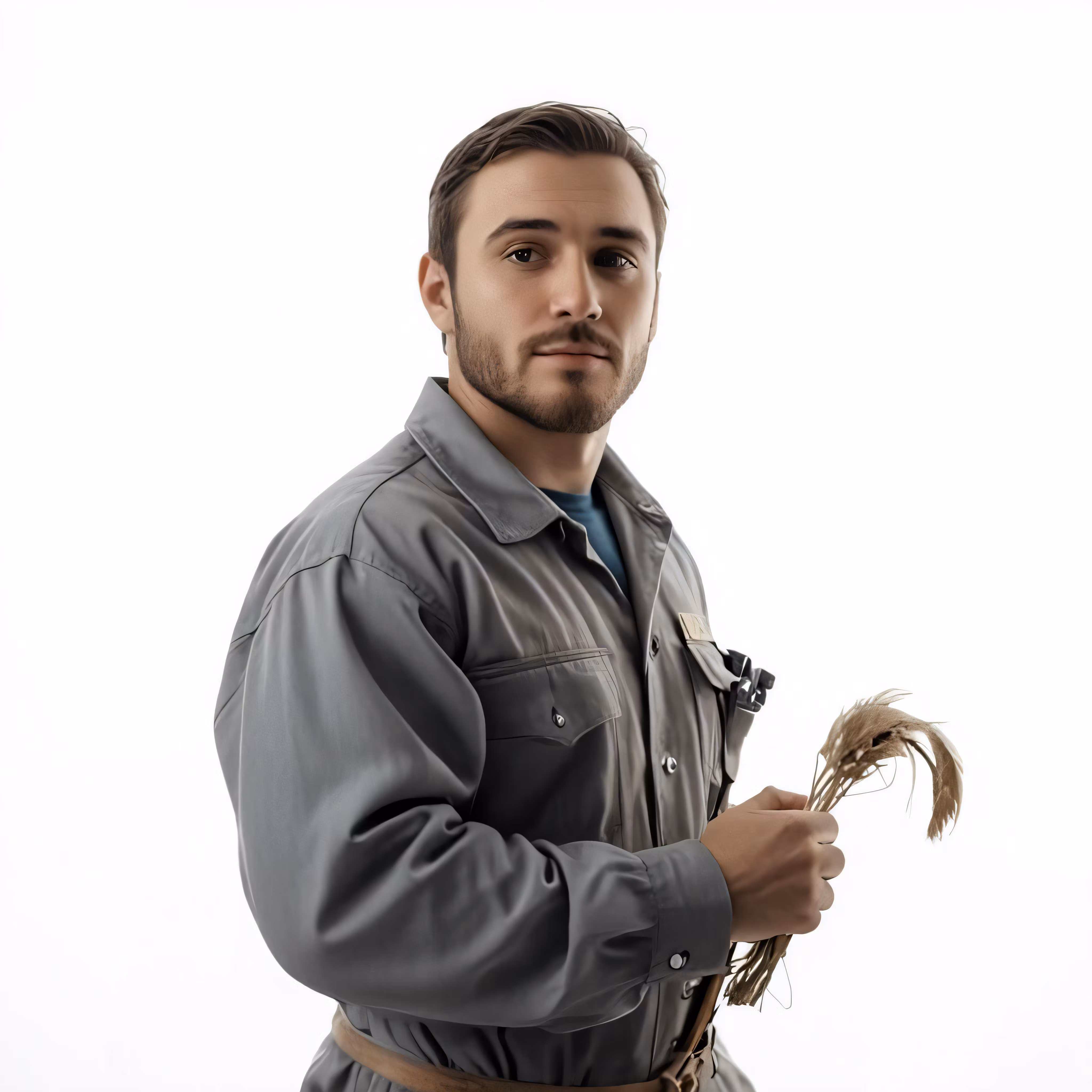 High resolution picture, free to use, a man holding a fake bird next to his hand