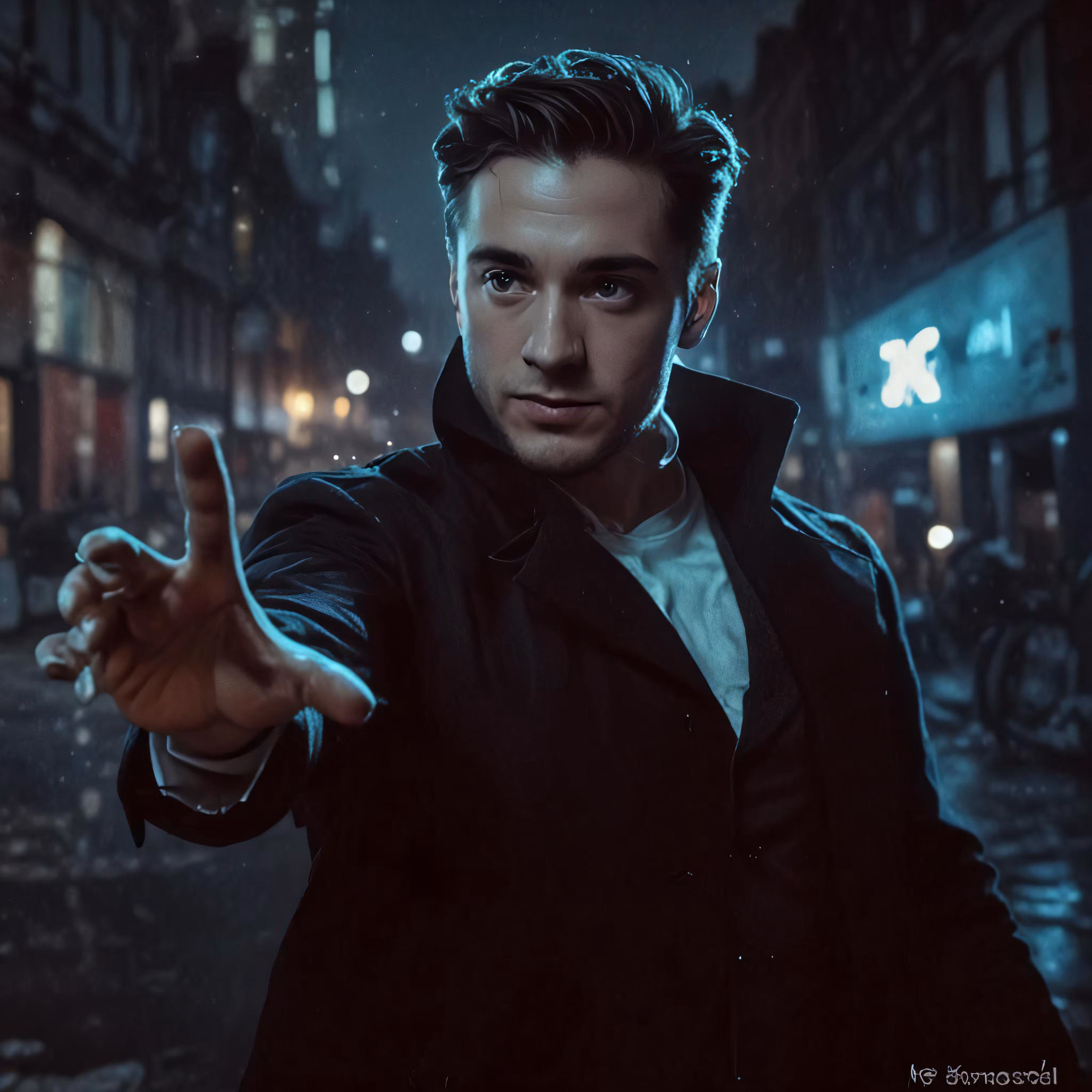 High resolution picture, free to use, a man holding a hand sign while wearing a black coat