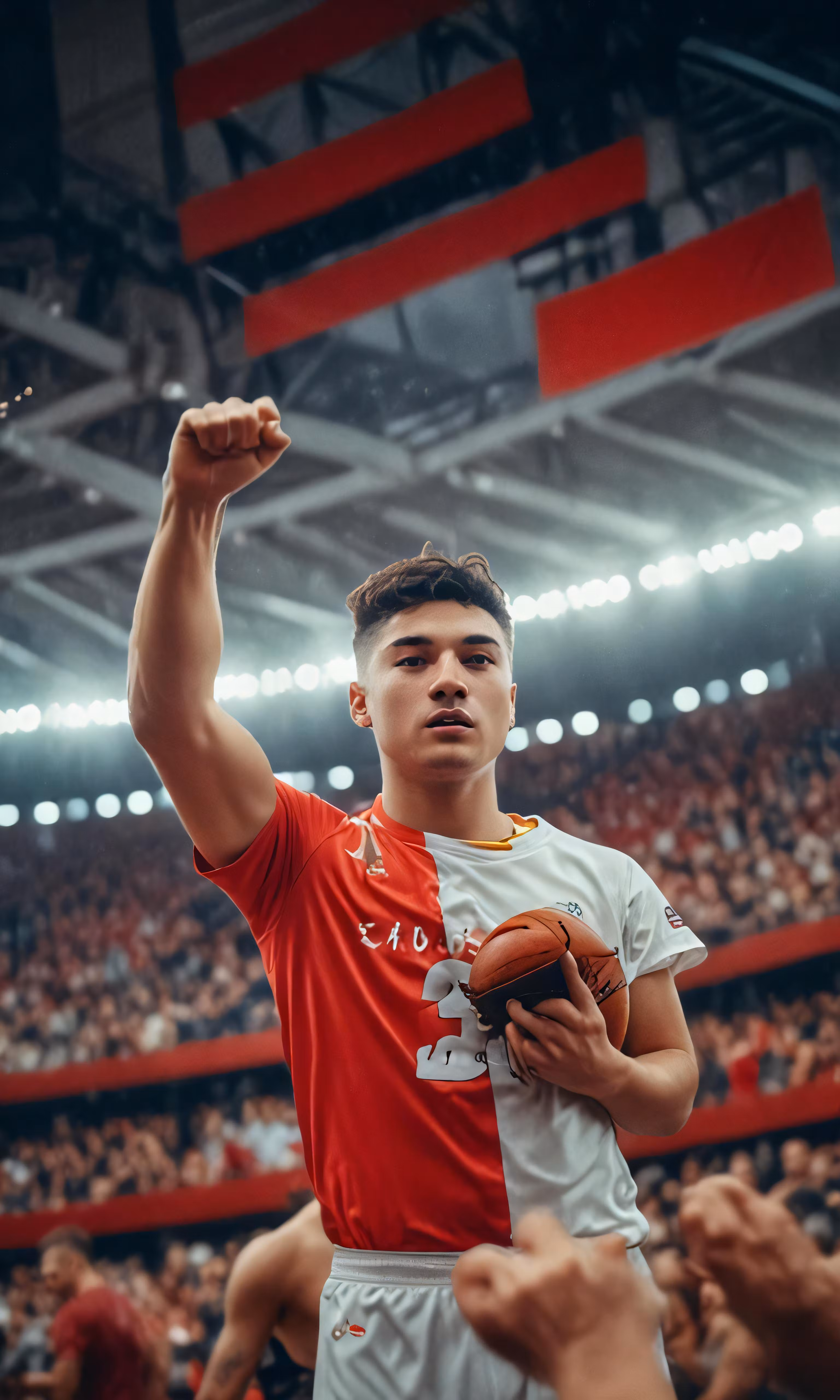 High resolution picture, free to use, a man holds a hot dog while people wave