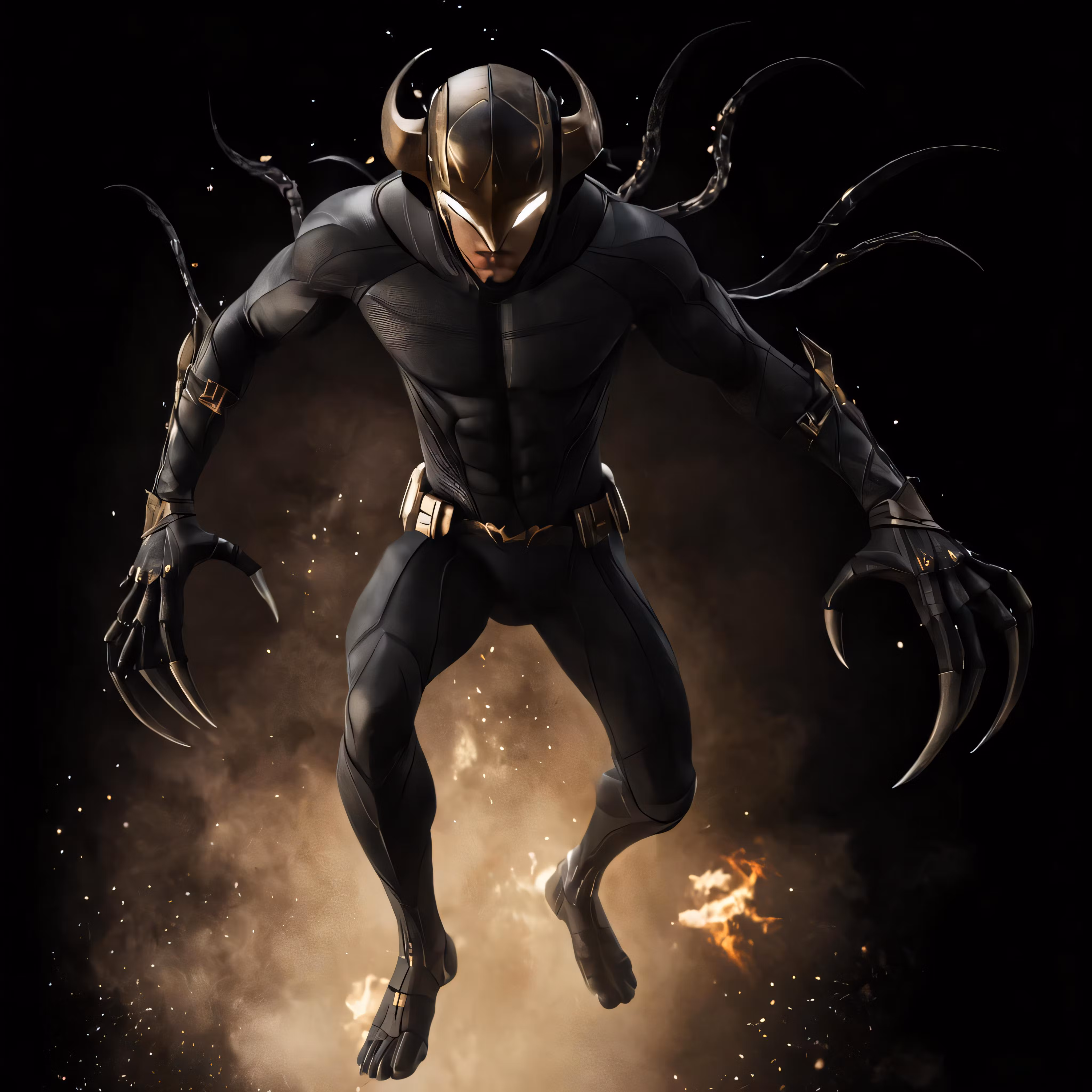 High resolution picture, free to use, a man in a mask and a black outfit with horns