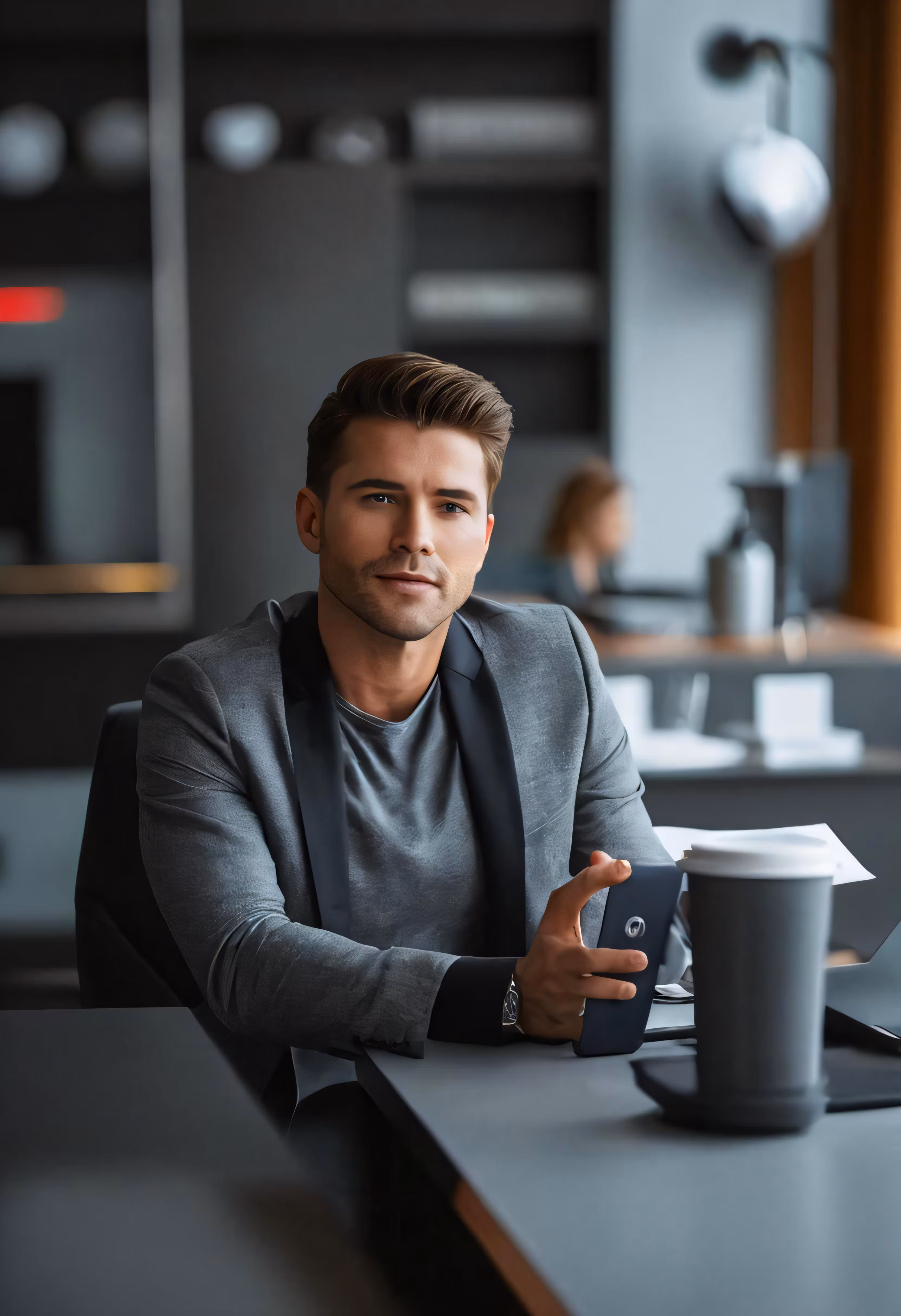 High resolution picture, free to use, a man in a restaurant holding a cup