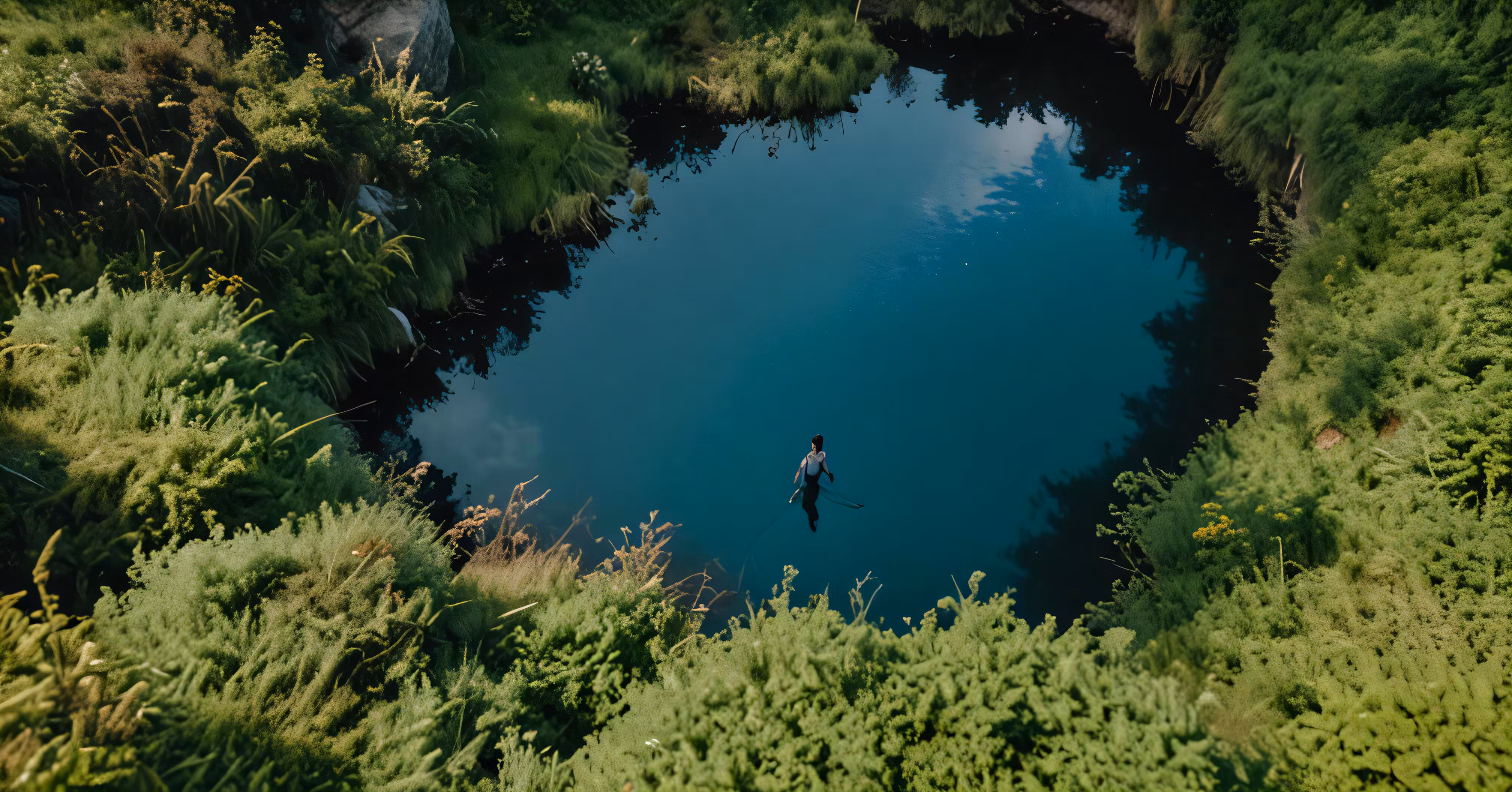 High resolution picture, free to use, a man in a small boat in the middle of a river